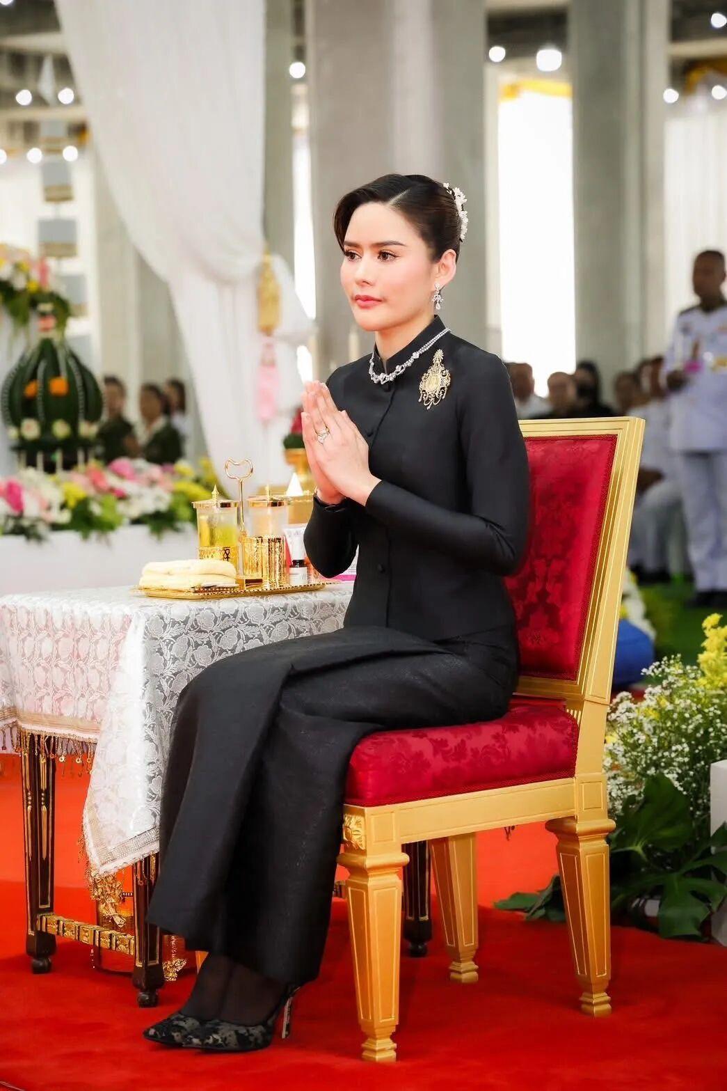 臨行前,“衆妃之首”歐拉弄就被泰王任命爲代表,替兩人主持公務。亮相穿黑衣,感覺長相又變了,下巴變尖、臉變小,進一步精緻化。