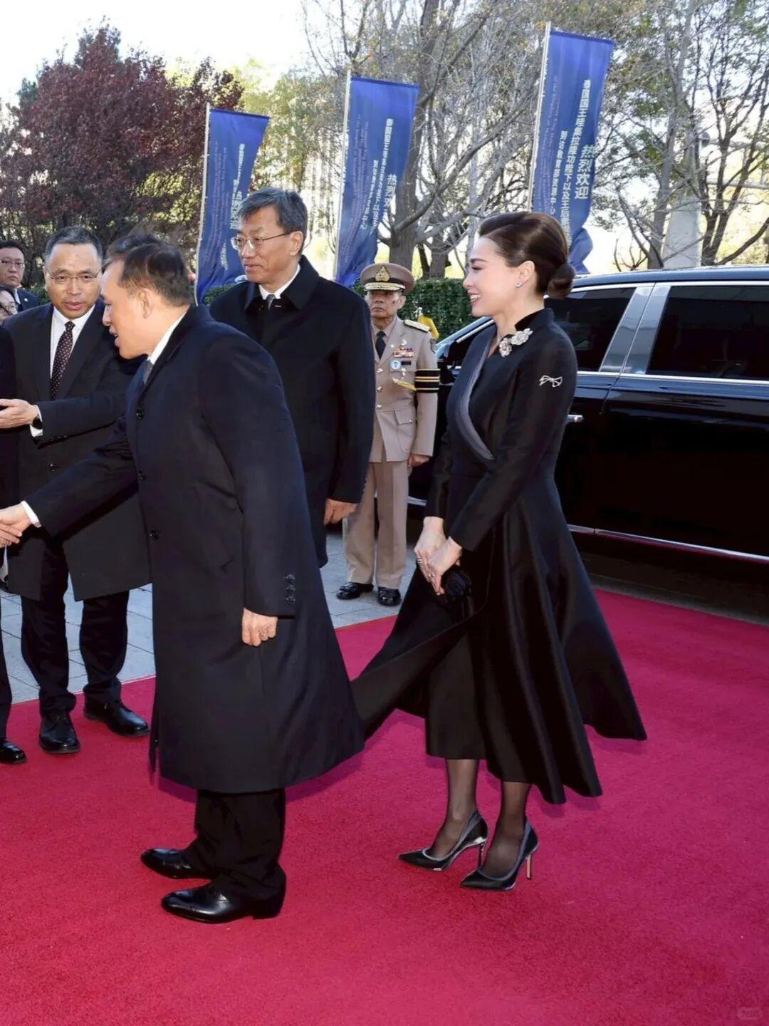 蘇提達這次中國行也堪稱一場個人時裝秀,5天行程共切換8套Look,在王太后去世的服喪期間,把黑色系穿出花。