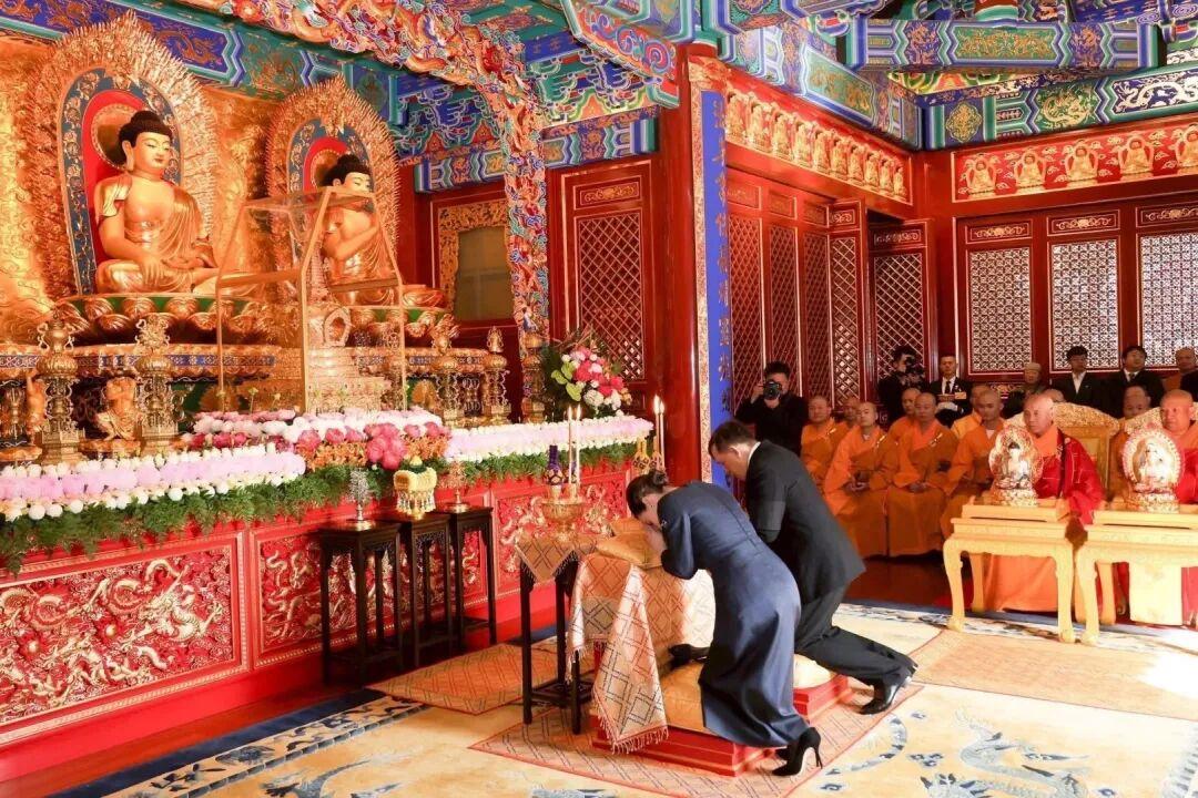 去靈光寺時同樣穿了10cm恨天高,在佛像前“絲滑跪拜”,展現傳統藝能。