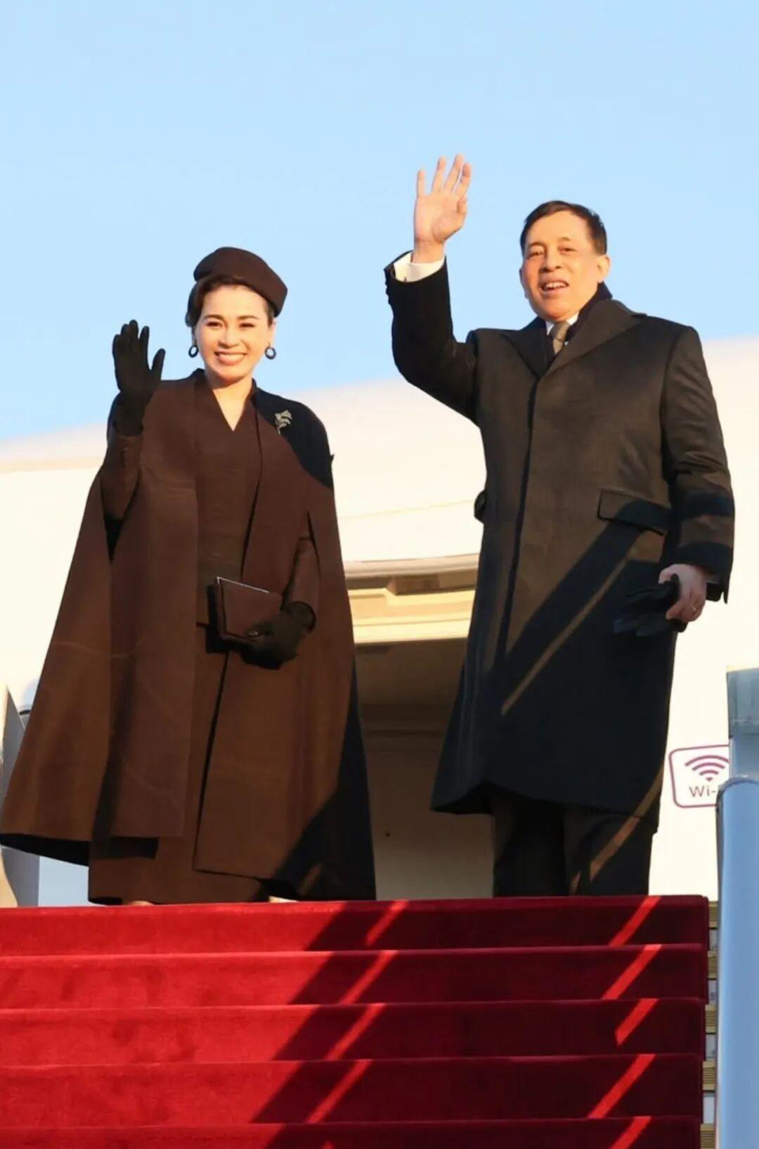 在返程的飛機前,泰王穿大衣揮手喜笑顏開,作爲登基後首次來華,感覺對這段旅程很滿意。王后蘇提達一襲斗篷大衣搭配黑手套,面對接近0度的氣溫,依舊保持優雅,被網友評爲“狠人”~