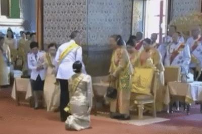 除了對泰王,她對婆家人也畢恭畢敬,一言不合就行跪拜大禮。比如早年見國王的妹妹詩琳通公主,都以跪着的姿態與公主交談。