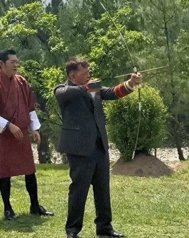 從拉弓動作就能看出,平時肯定沒少練,一旁的泰王也是一臉得意的表情。