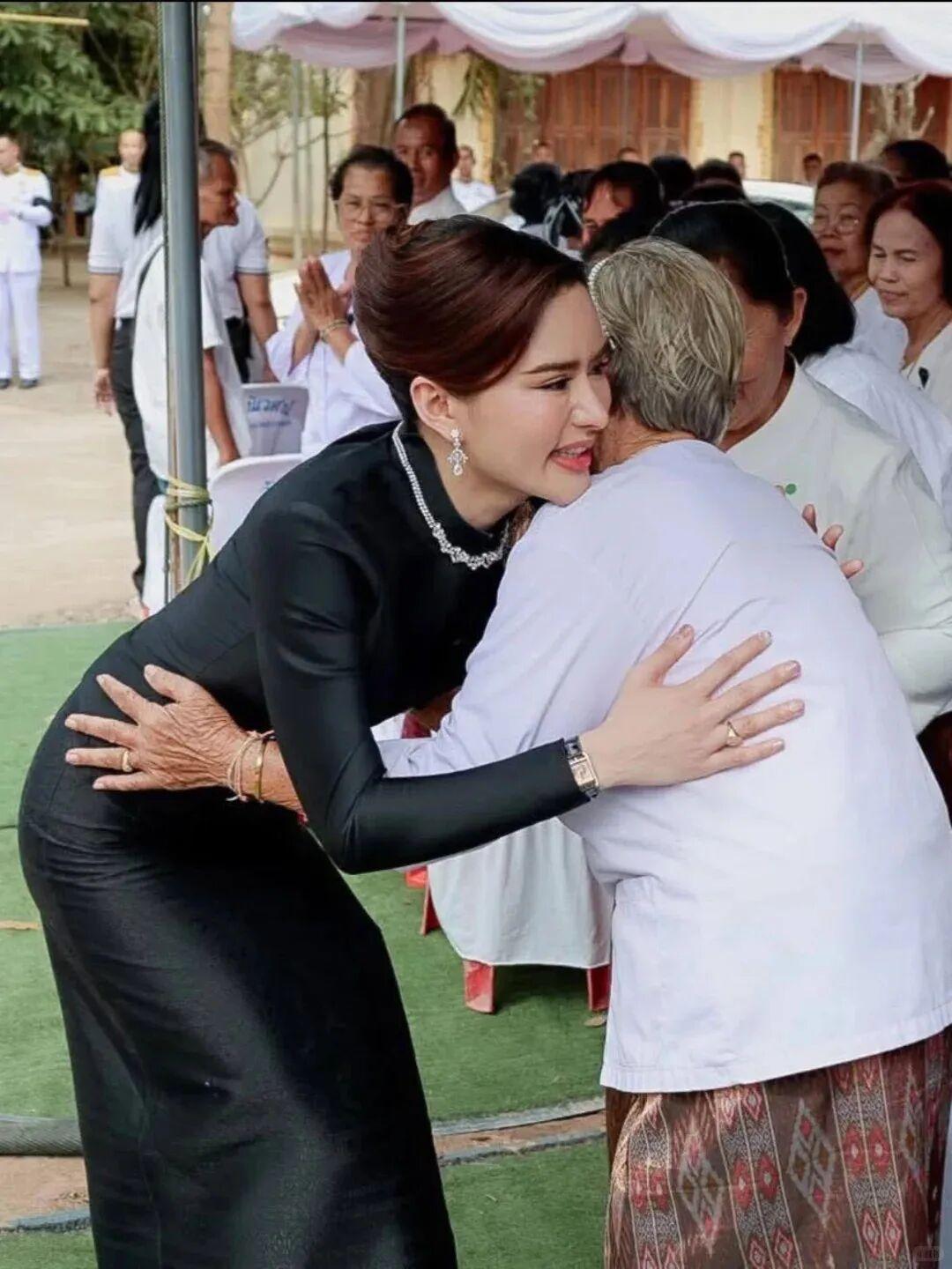 還坐泰王的邁巴赫“衣錦還鄉”,短捲髮配淡妝氣質溫婉,和民衆親密互動很接地氣。