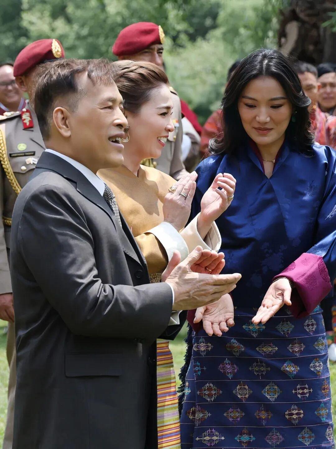 和“東方凱特”不丹王后同框,47歲vs34歲,幾乎看不出年齡差。不丹王后也是地母系長相的代表了,這波高手過招也是難分伯仲。