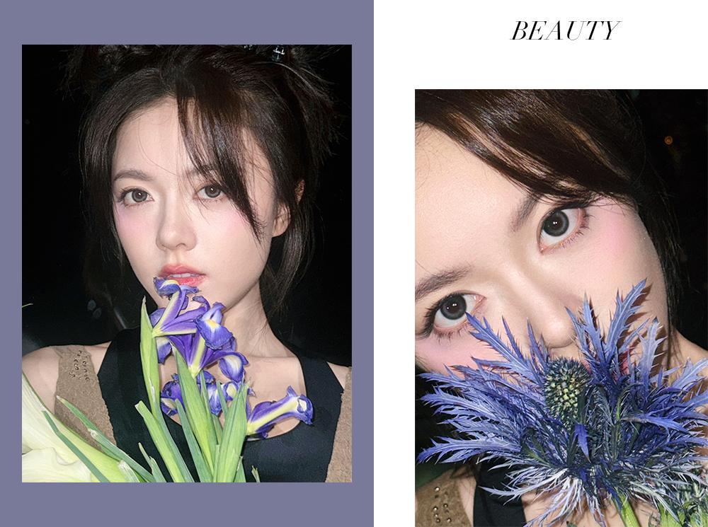 而第三個容易翻車的點,則是眼部元素堆積過多,當睫毛描得太重、眼妝過於搶眼,再加上美瞳的存在,瞳孔本身的光澤很容易被掩蓋,眼神也隨之失去靈動感。