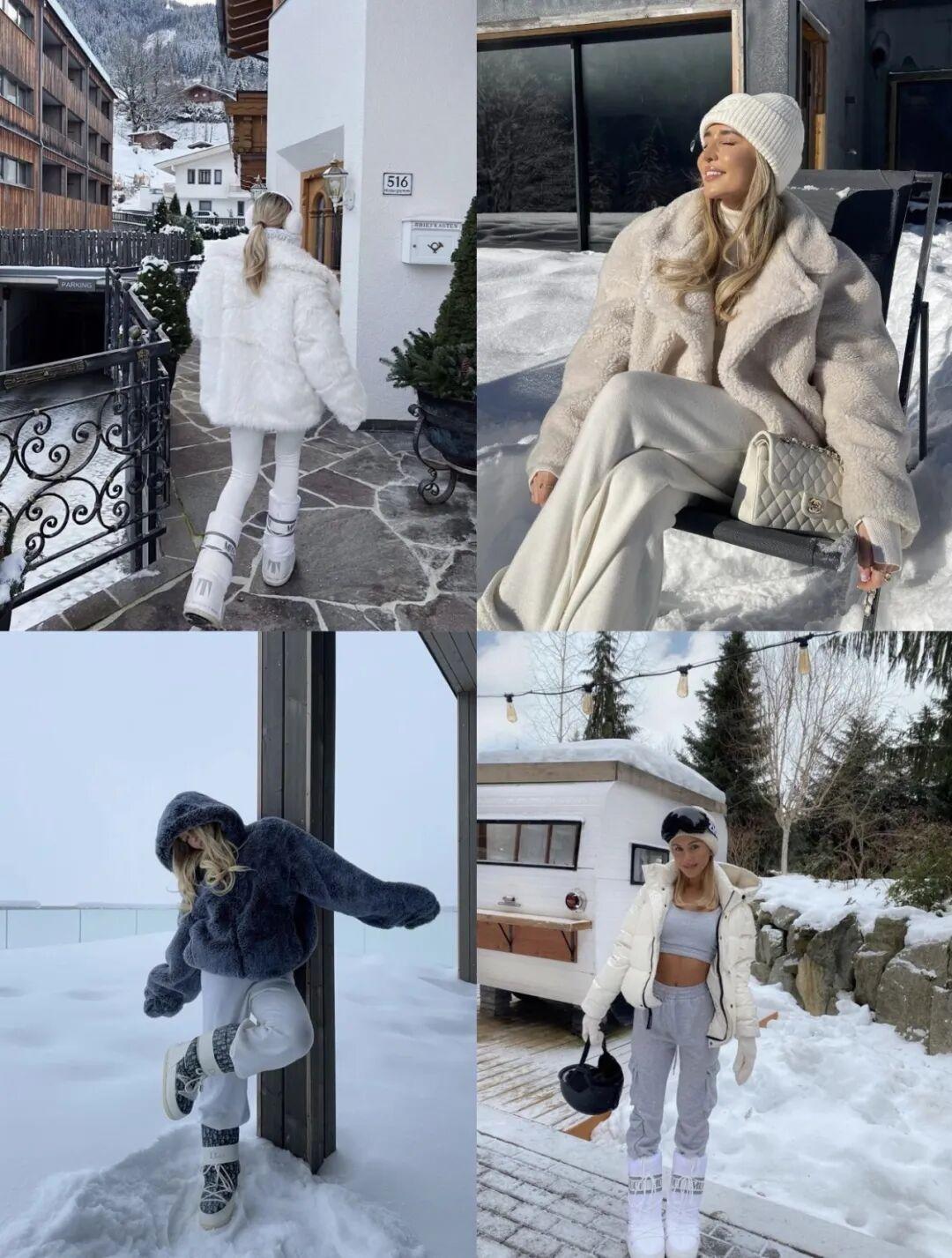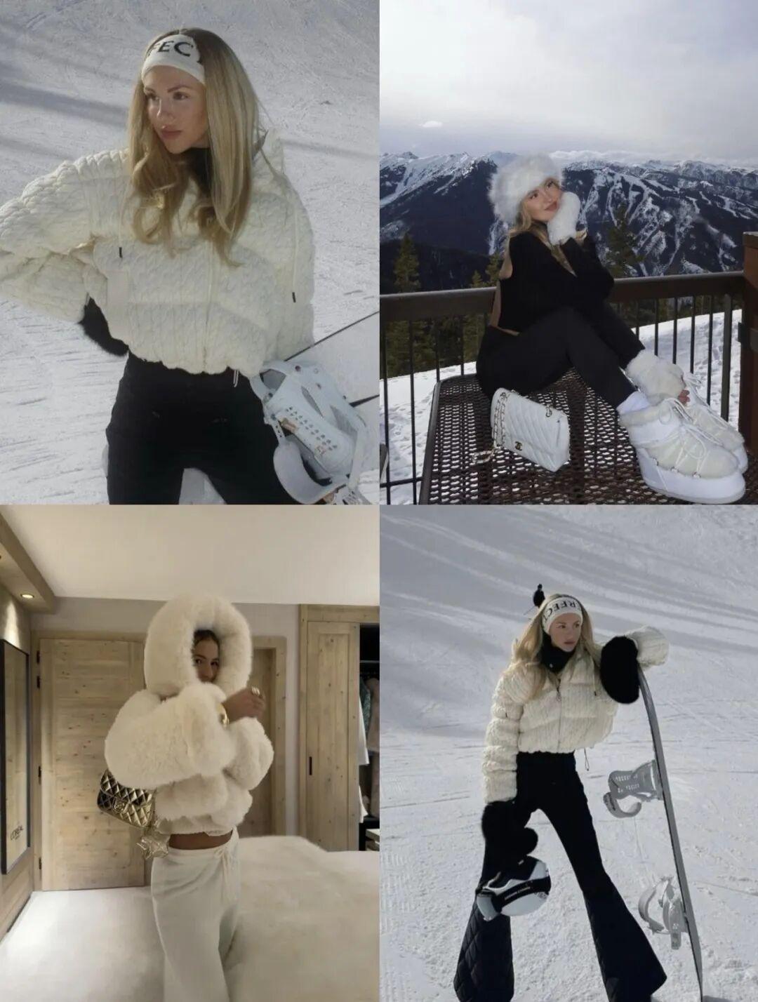 時尚博主們也在重新演繹滑雪風:有人將滑雪服外套當作城市防風衣穿出街,有人把雪地靴搭配百褶裙,打造“滑雪後咖啡館”造型。那種介於運動與日常之間的張力,恰恰是Skicore的時髦所在。