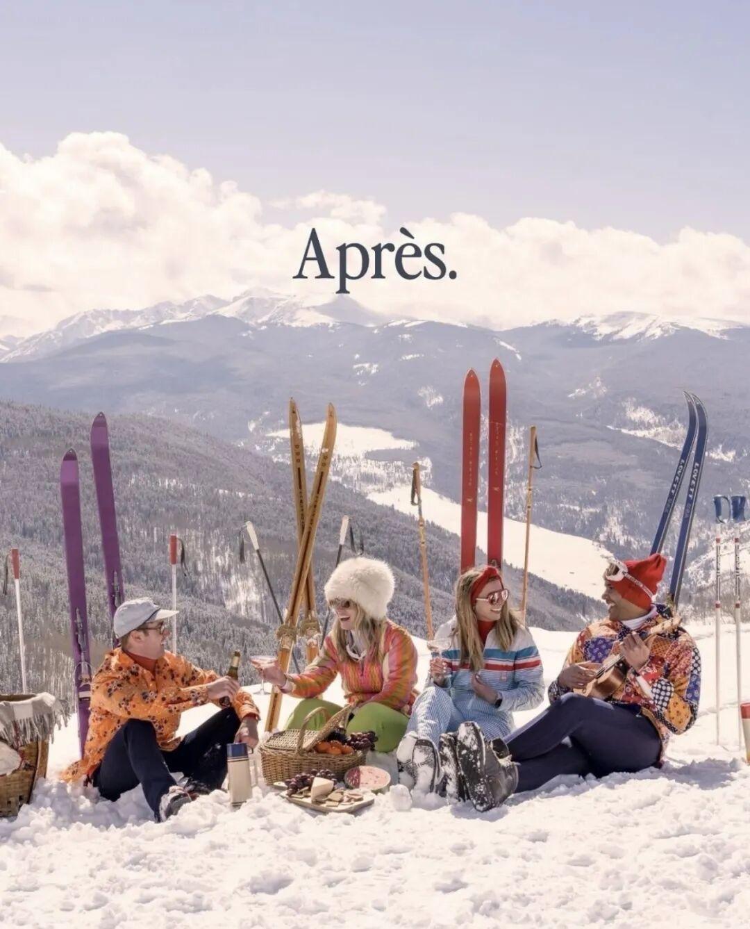 當下,#AprèsSki(滑雪後)成爲了社交媒體上最火的標籤。它象徵着一種鬆弛而高配的生活想象:在雪場結束滑行後,卸下頭盔、披上毛衣、點燃壁爐、舉起香檳的那一刻——那份介於動感與慵懶之間的姿態,讓這些時尚大牌紛紛搶奪Skicore靈魂的真諦。