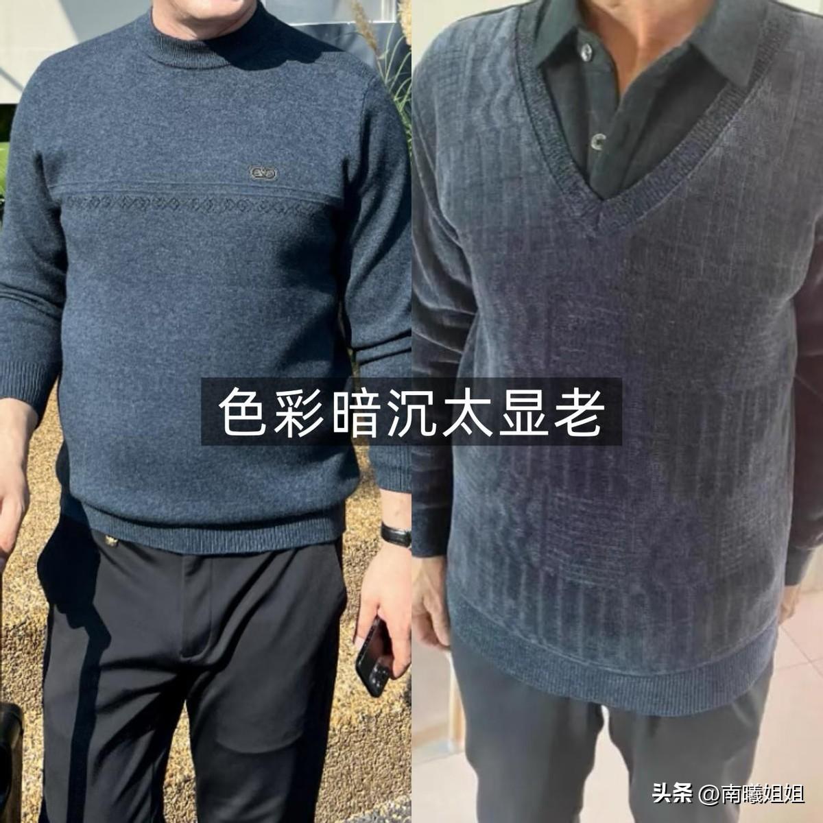 中年男人可以不用追求減齡的效果,但是也不能穿的太老氣,老頭毛衣看似符合年齡,實際上特別顯老氣,50歲穿上去會有種60歲的既視感,所以並