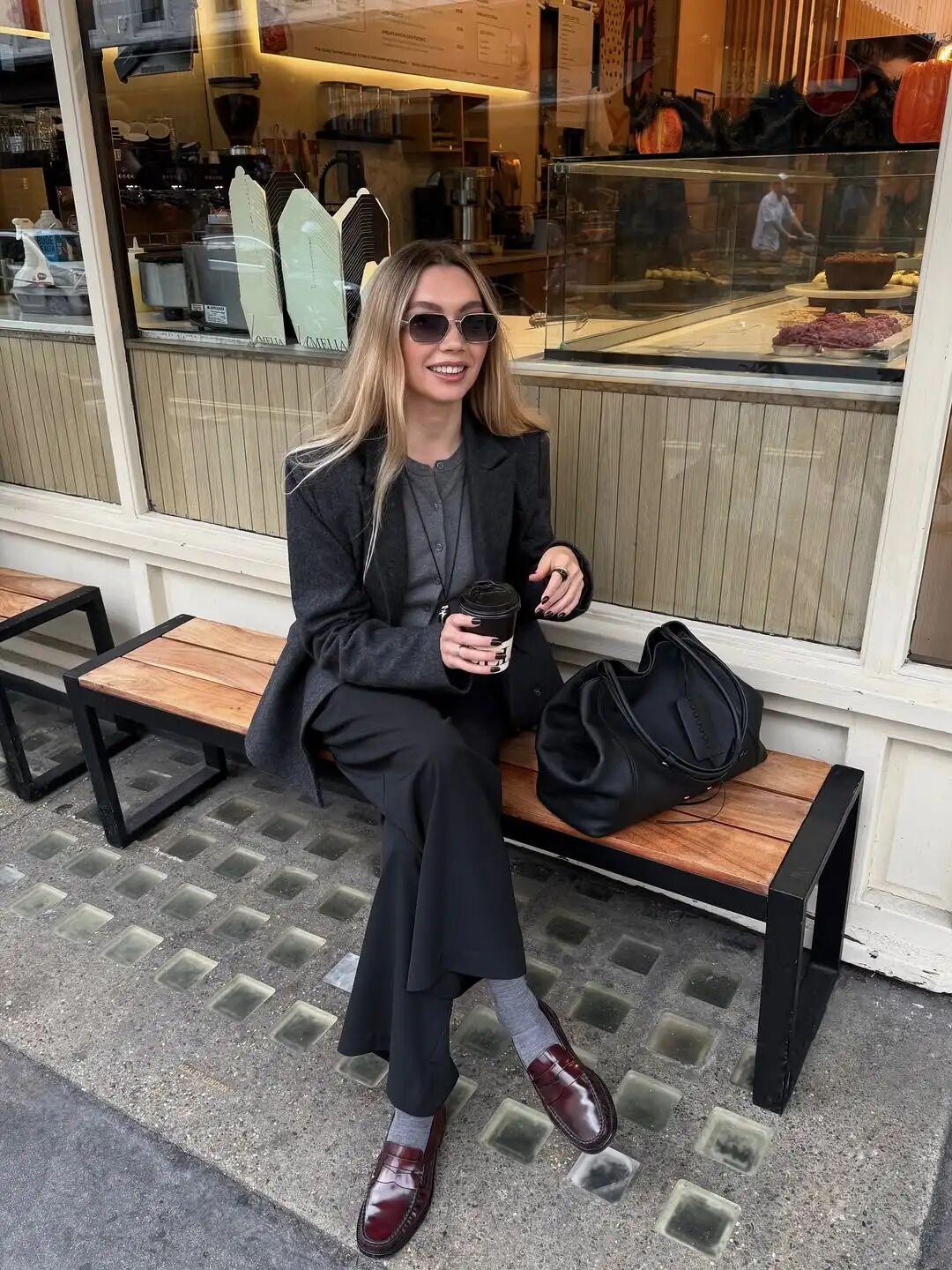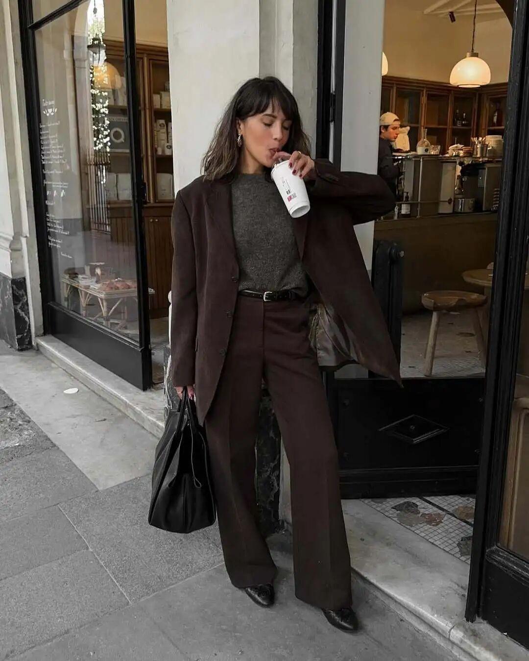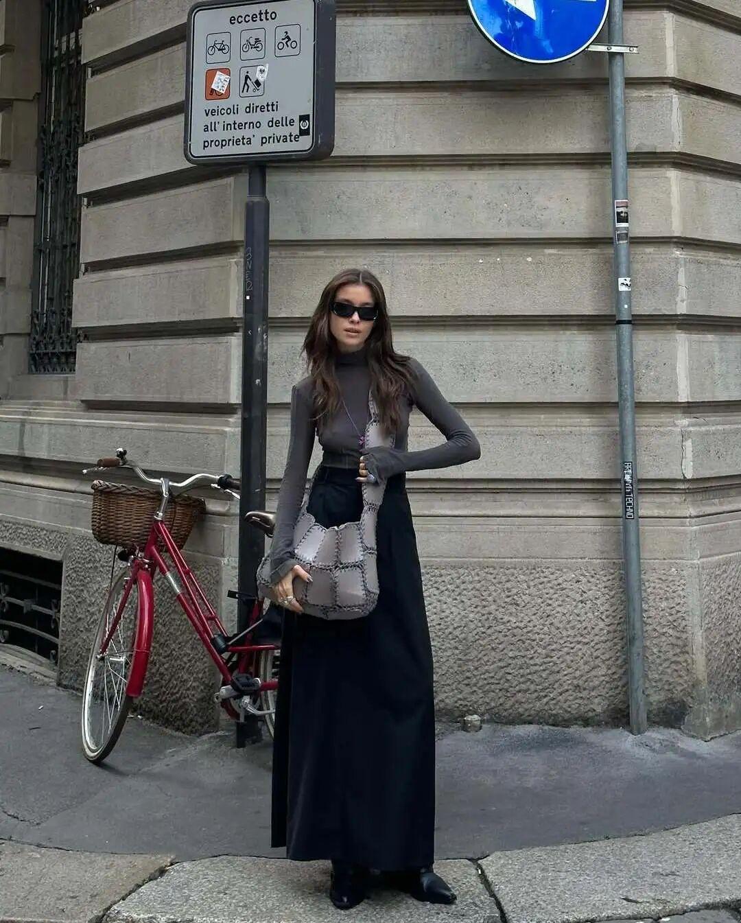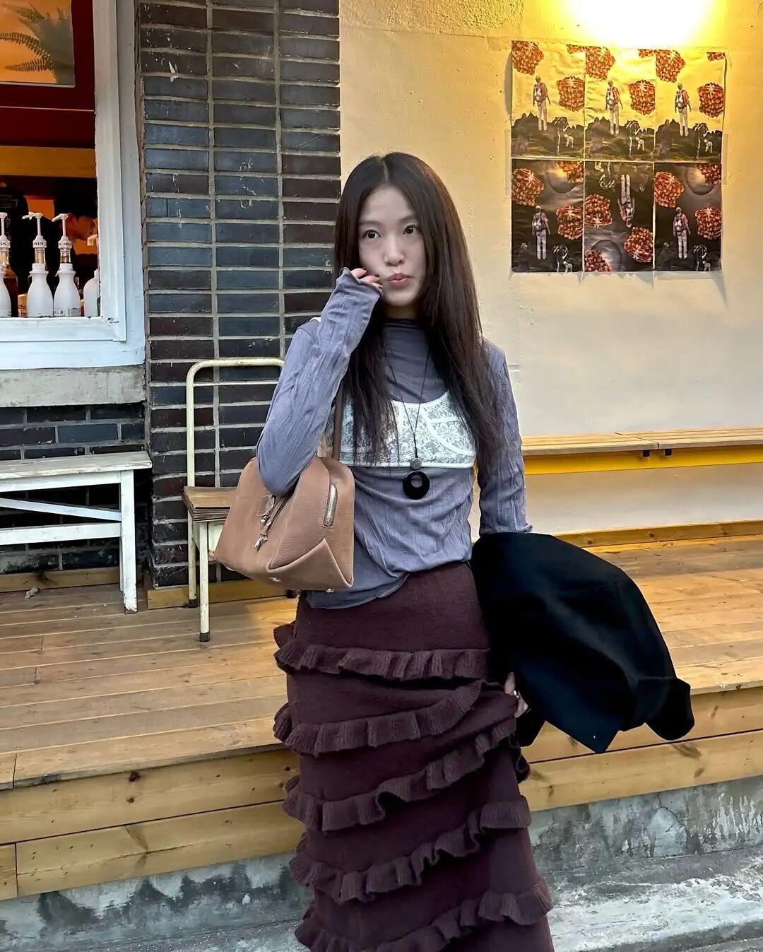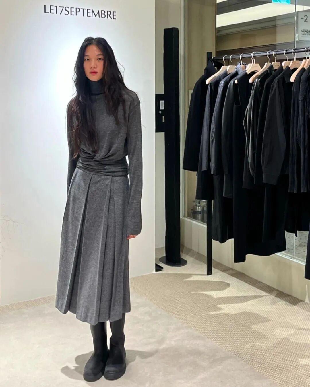 不知道怎麼搭配時,同色系就是那個不出錯的選擇,灰色系的搭配更是把“剋制美”發揮到了極致。用灰色打底搭配百褶裙或是大衣,顏色上從淺到深自然過渡,不同灰度會泛出不同的柔和光澤,像水墨畫的漸變色,沒有多餘的色彩干擾,卻靠面料的質感清晰分出層次。