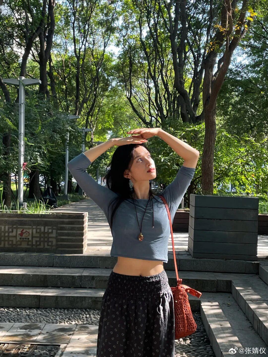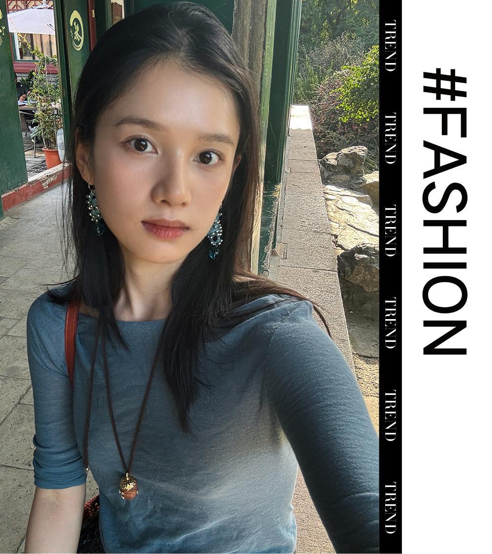 張婧儀上身的這件灰色打底可以說是“心選內搭”了!沒有複雜印花與誇張剪裁,修身卻不緊繃,自然貼合肩頸與腰線曲線,清爽中透着利落。