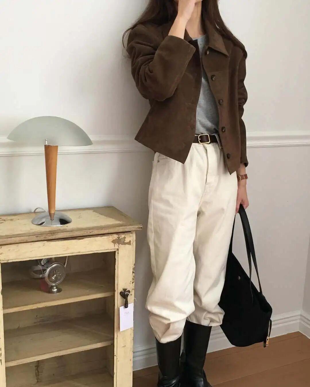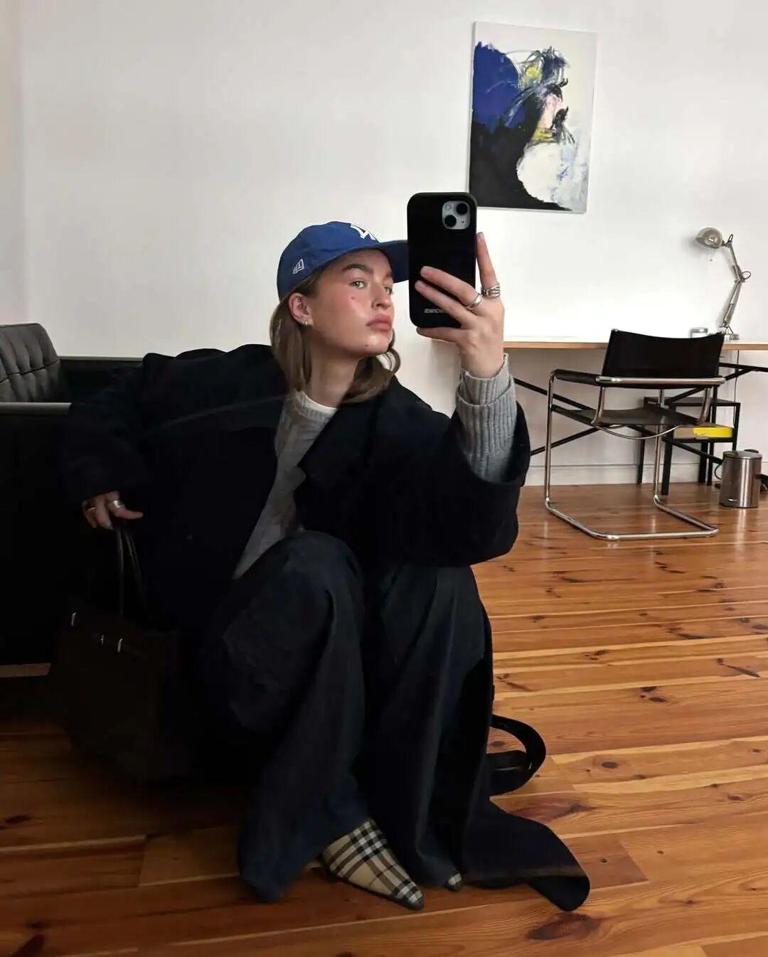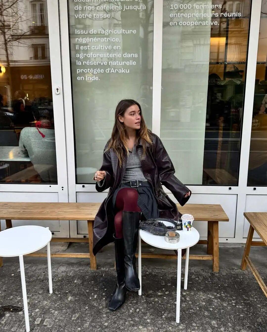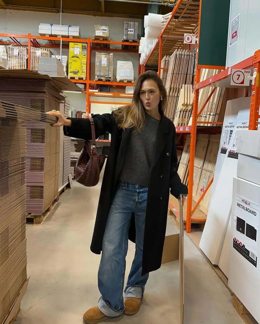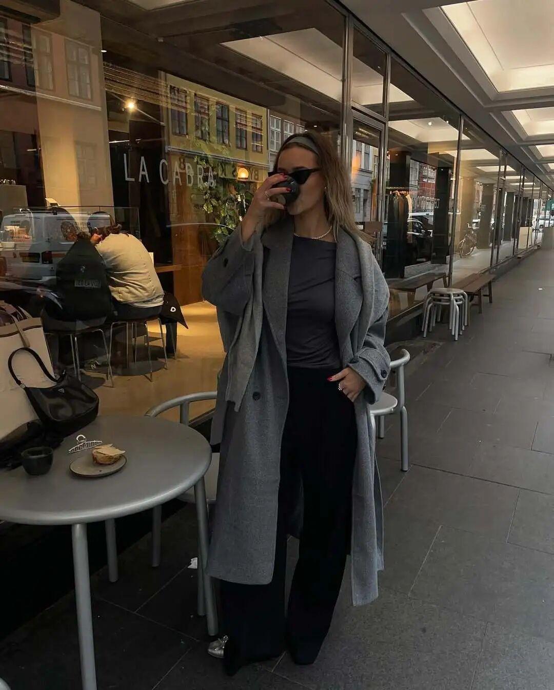 作爲內搭來說,灰色打底衫可以選擇與身線廓形大致貼合的款式。袖口剛好到手腕最細的地方,衣長落在腰線附近不拖沓,既能更好地“隱形”在外套裏,又能悄悄勾勒出利落線條,成爲冬日穿搭裏不搶戲的核心支撐。