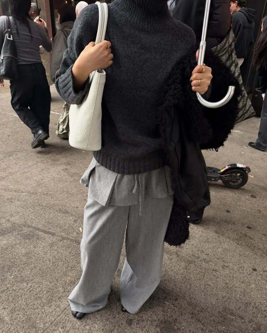 灰色打底便是這樣一件能夠給人“安全感”的內搭,能夠接住各種風格的外套,知道什麼時候該收斂,什麼時候該襯托,把“得體”兩個字穿得毫不費力,讓冬天的穿衣環節少了糾結,多了篤定。