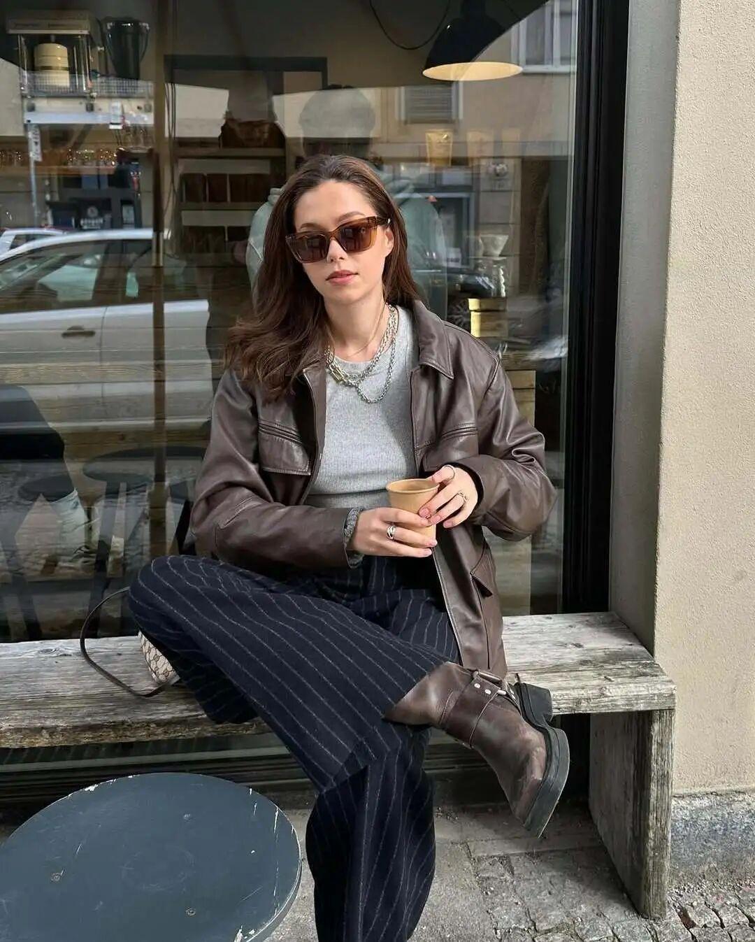 圓領的灰色打底是更加“不挑人”的單品,正如它圓潤柔和的線條,哪怕遇上西裝、皮衣這種帶點“鋒利”感的外套,也能以柔克剛,展現出化繁爲簡的溫柔魅力,讓整體造型多了份鬆弛。