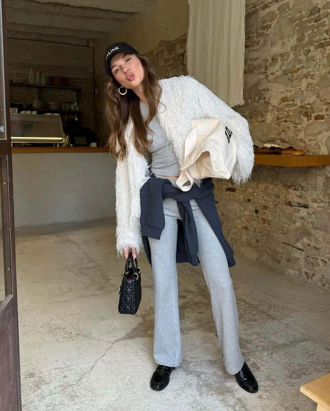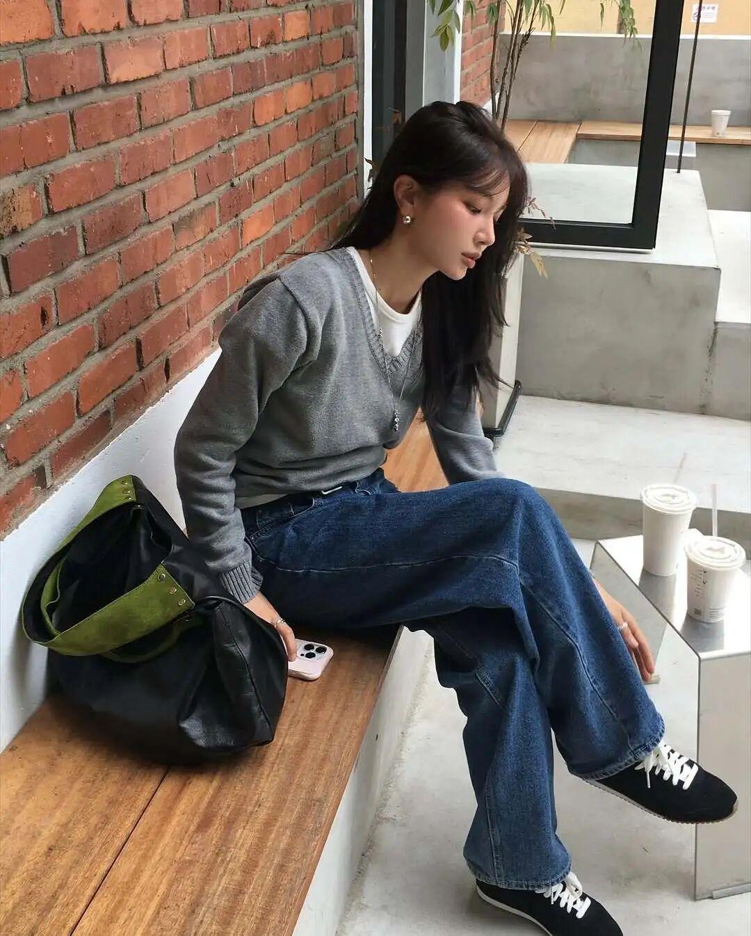 稍帶些設計感的灰色打底衫則是自帶加分項,比如開衫,或是帶着肌理感的麻花款式,在默默過渡的同時多了一份低調精緻,在室內單穿也不會顯得單調。