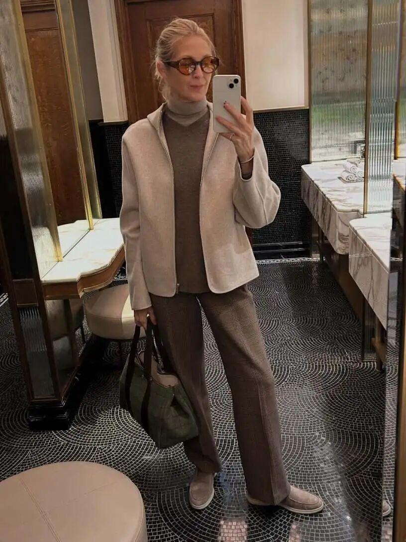 在室內熱、室外冷的北方,羊絨可以輕鬆應對室內外的溫差。層層疊疊中有穿搭大智慧。最外層一件質感超羣的羊絨大衣,中間層負責造型和過渡,可以選擇一件有設計感的襯衫,或是一件輕薄的馬甲。最內層是你的保暖底牌,一件貼身的輕薄羊絨衫或羊絨打底。