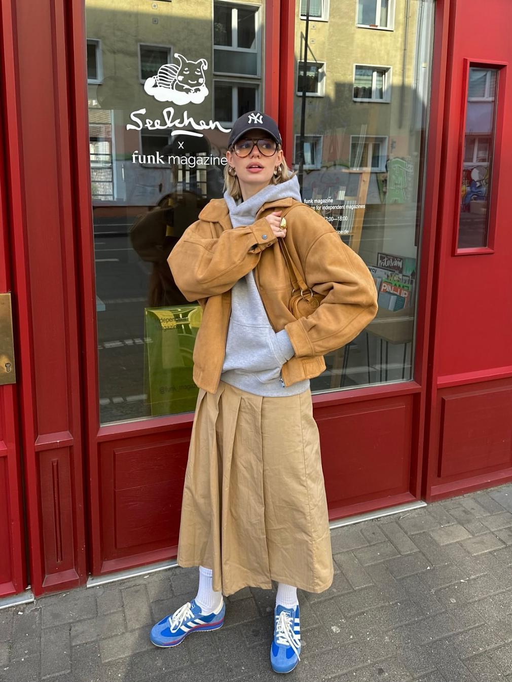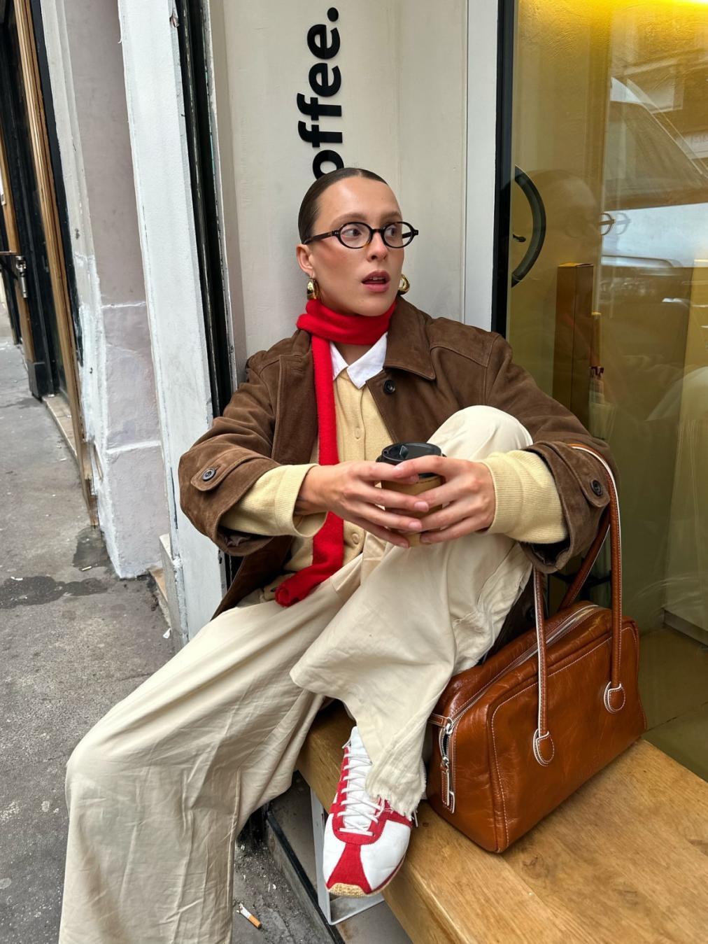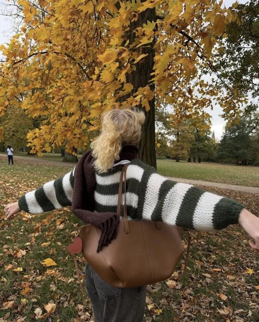 落葉系穿搭並不一定要被大面積的落葉色包裹。往往只需一件單品,就能讓整身造型瞬間擁有秋日氣息。