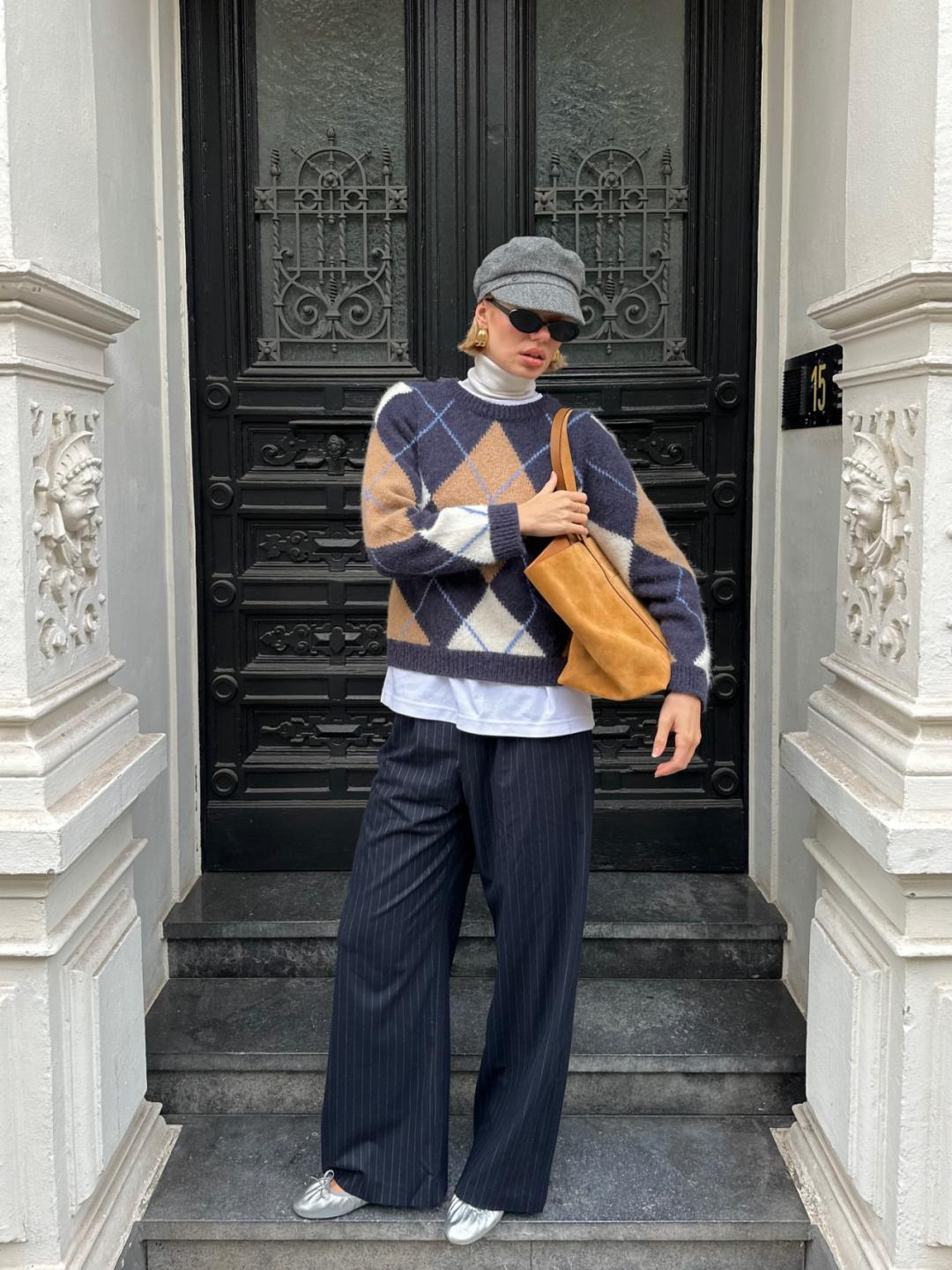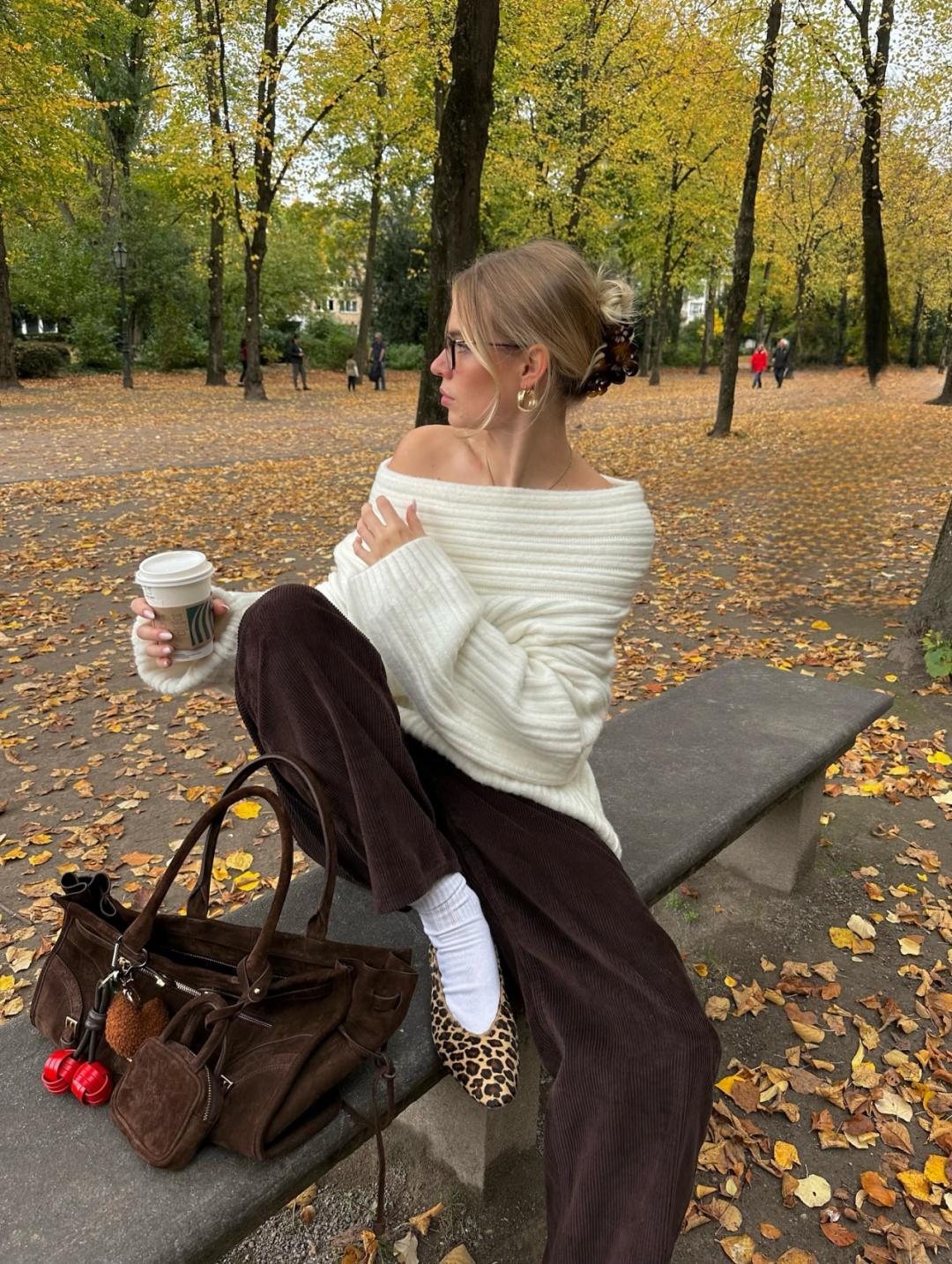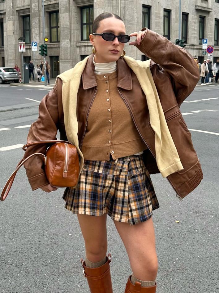除此之外,針織背心、燈芯絨單品與復古格紋外套,都是“落葉美學”的代表元素。它們擁有秋天特有的質感溫度,輕輕疊加在任何造型中,都能讓氛圍柔和下來,像陽光穿透雲層的那一刻,溫暖又不刺眼。