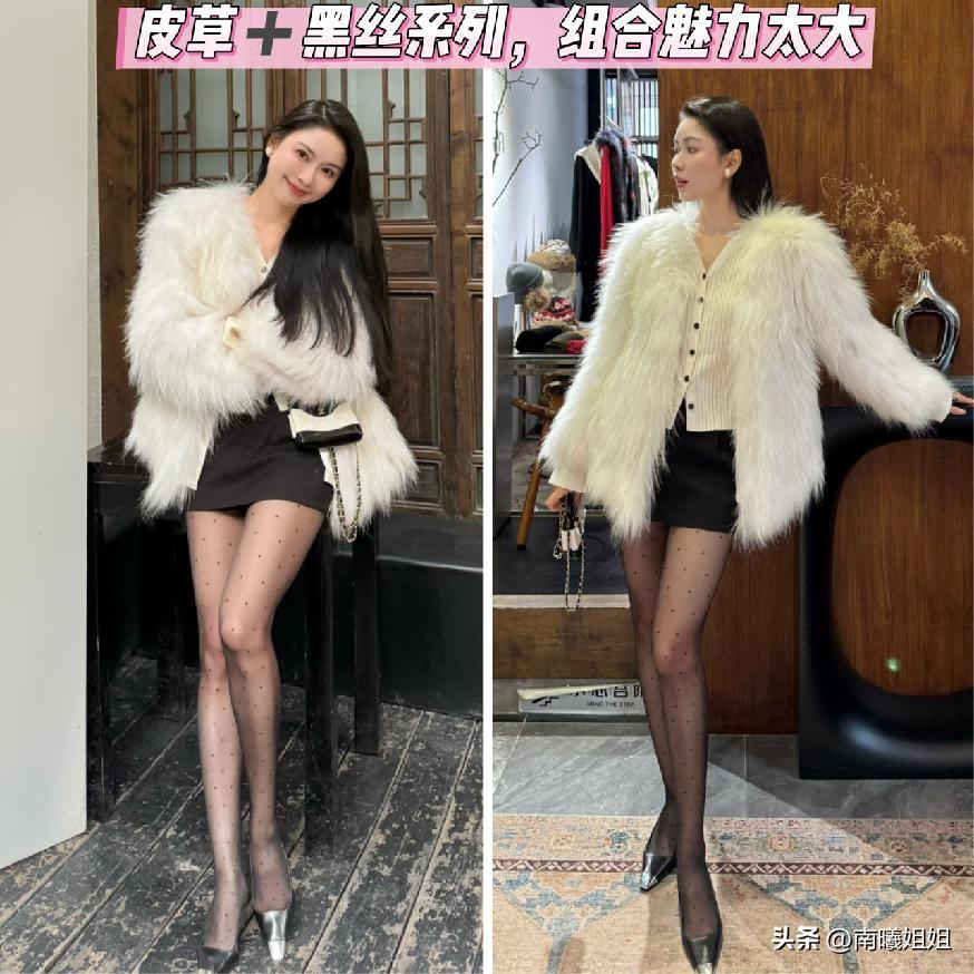 ⓵ 皮草+黑絲的組合,魅力值拉滿