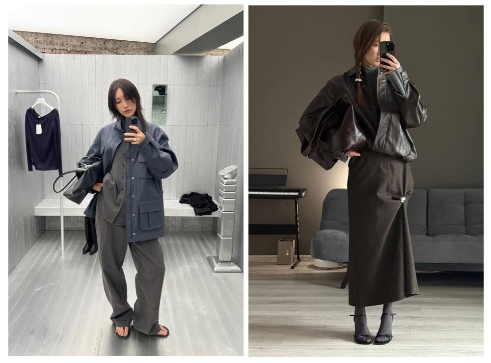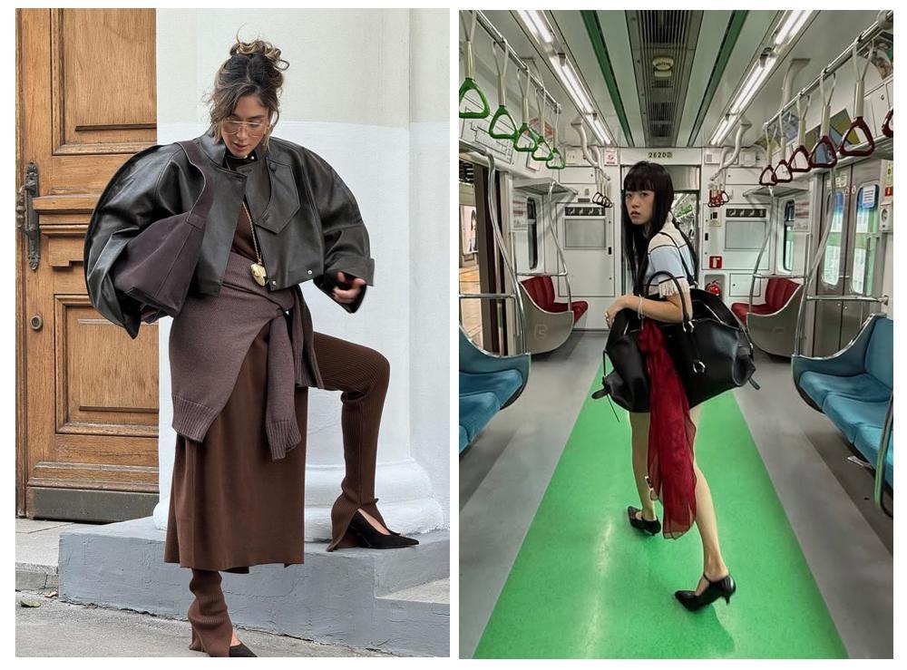若擔心結構感包袋會令造型過於強勢或中性化,不妨嘗試將其與女性化單品混搭。例如,在穿着飄逸柔美的半裙時,搭配一款線條硬朗的結構包袋。這種混搭手法能在嫵媚優雅的主基調中,巧妙地注入一絲冷峻的個性。