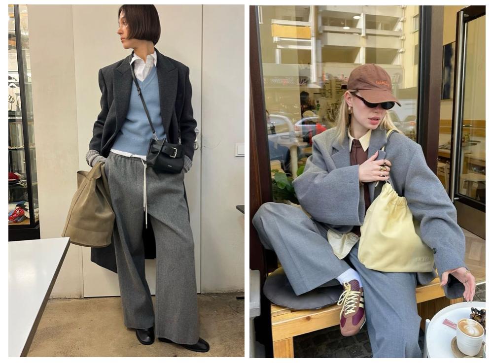 水桶包看似設計常規,但它不僅擁有驚人的容量,更自帶一種隨性自在的慵懶感。當它與利落的西裝造型搭配時,水桶包的圓潤輪廓能有效軟化西裝的正式感,使整體風格偏向簡約大氣。