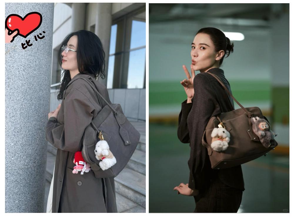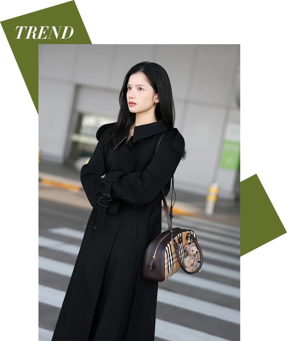 在職場場景中,結構化肩包與闊肩西裝外套、高腰直筒褲搭配。通過包身立體縫線與服裝的剪裁,形成默契的搭配。張婧儀這身以風衣爲主的秋日造型,瞬間將氛圍感拉滿。她搭配的保齡球包,獨特的包型與利落輪廓,成爲點睛之筆。經典的格紋元素賦予整體幹練優雅的基調,而包袋的弧形線條,則巧妙地注入一抹俏皮與靈動。