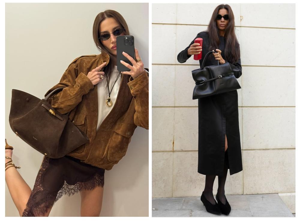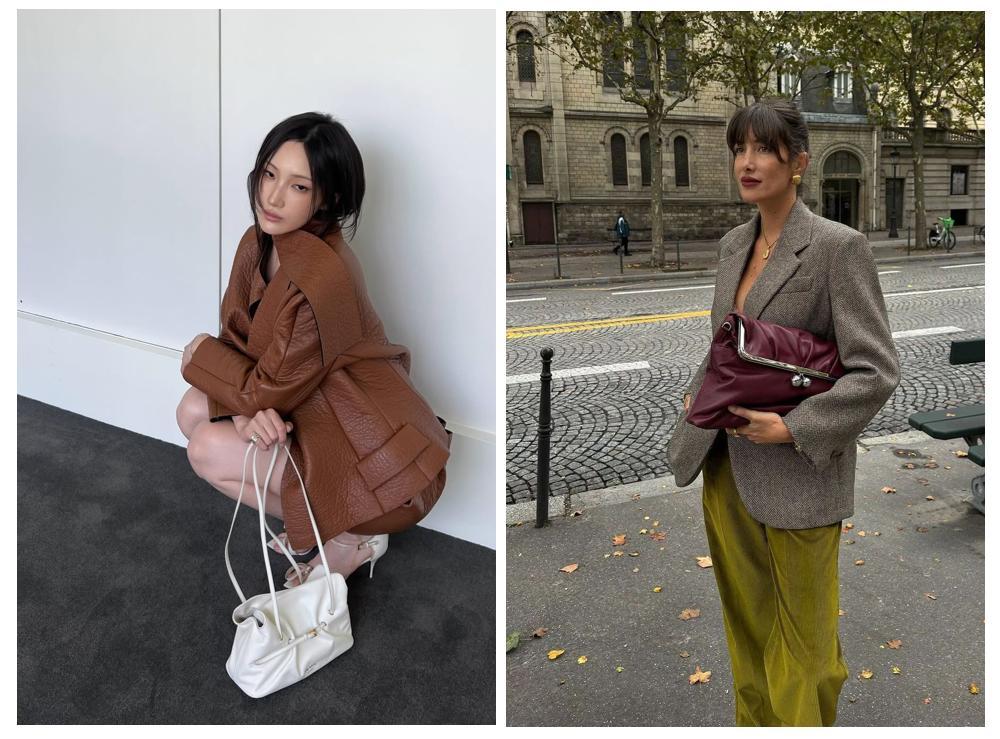 當立體的包身邂逅細膩的褶皺設計,工藝所帶來的自然質感便悄然流露。這種大而厚實的包型,與剪裁硬朗的皮衣或廓形外套堪稱天作之合。褶皺的柔軟肌理能有效中和外套的剛硬線條,從而營造出一種復古而高級的造型韻味。