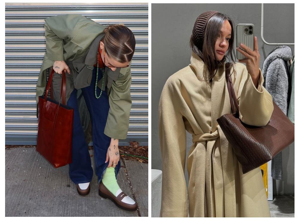 打造復古文藝風格時,一款線條簡單又形態立體的托特包是很好的搭配單品。它容量充足且造型隨性,與oversize風衣堪稱天作之合,只需將風衣隨意披上,便能營造出一種不費力的高級感與書卷氣。