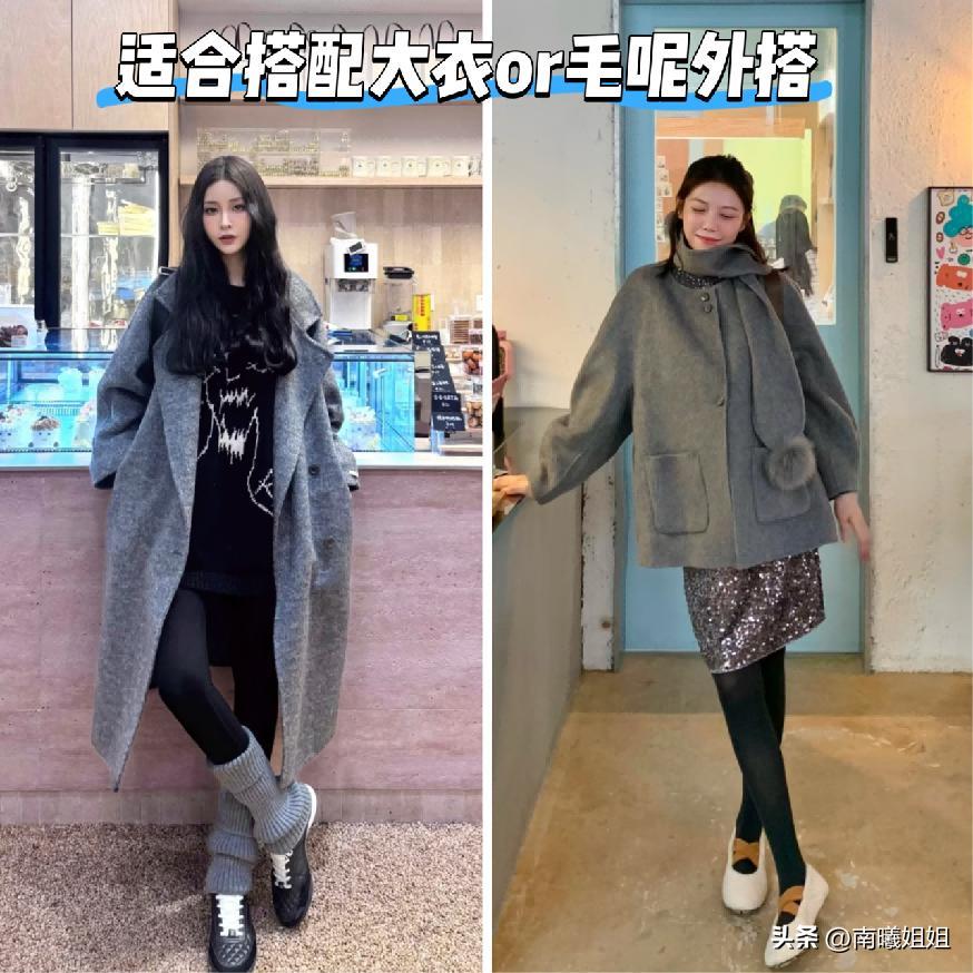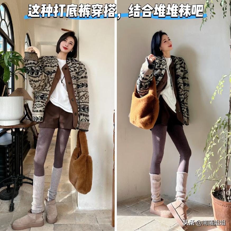 ② 這種打底褲搭配,更適合“堆堆襪”組合哦
