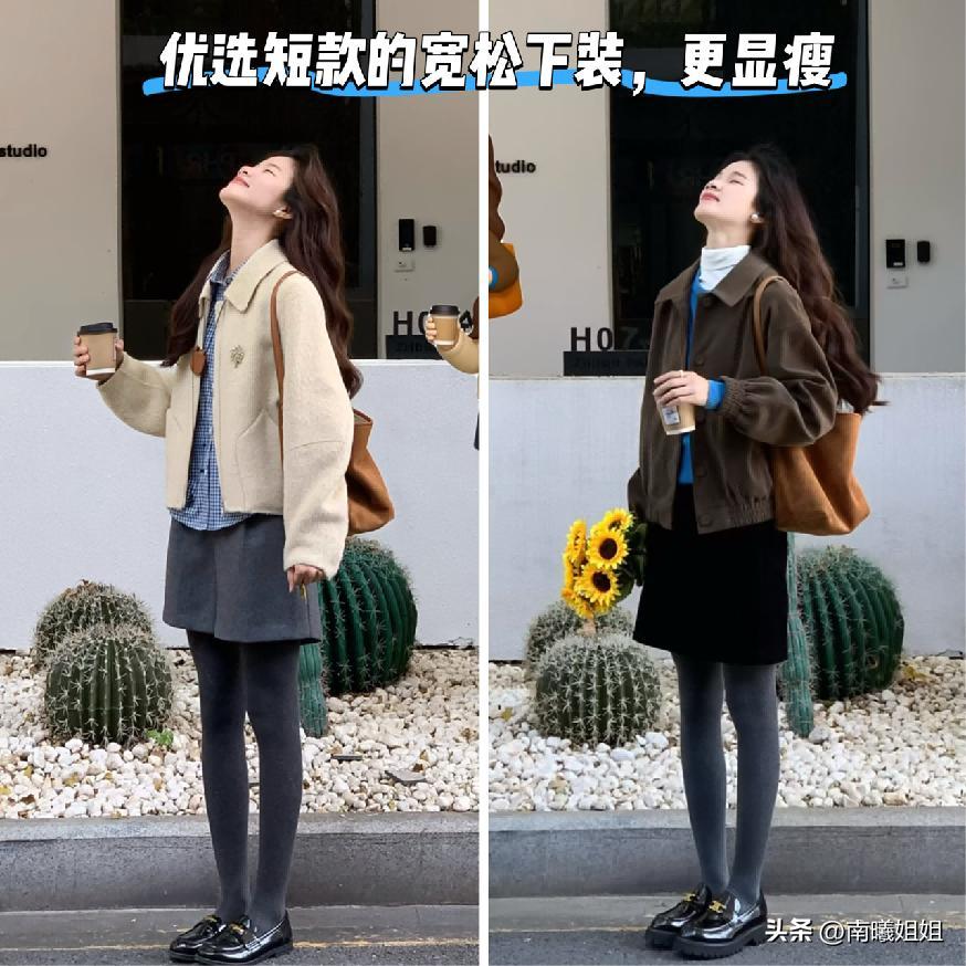 灰色系列或者是黑色調的打底褲,在進行搭配的時候,也可以結合短款的下半身單品來進行組合,襯托出來的減齡效果真的是非常明顯,而且又極具穩定性。推薦大家可以首選運用比較寬鬆的短裙或者短褲與你的打底褲來進行結合,襯托出來的整體效果就是屬於顯瘦還非常的極具舒適感哦。