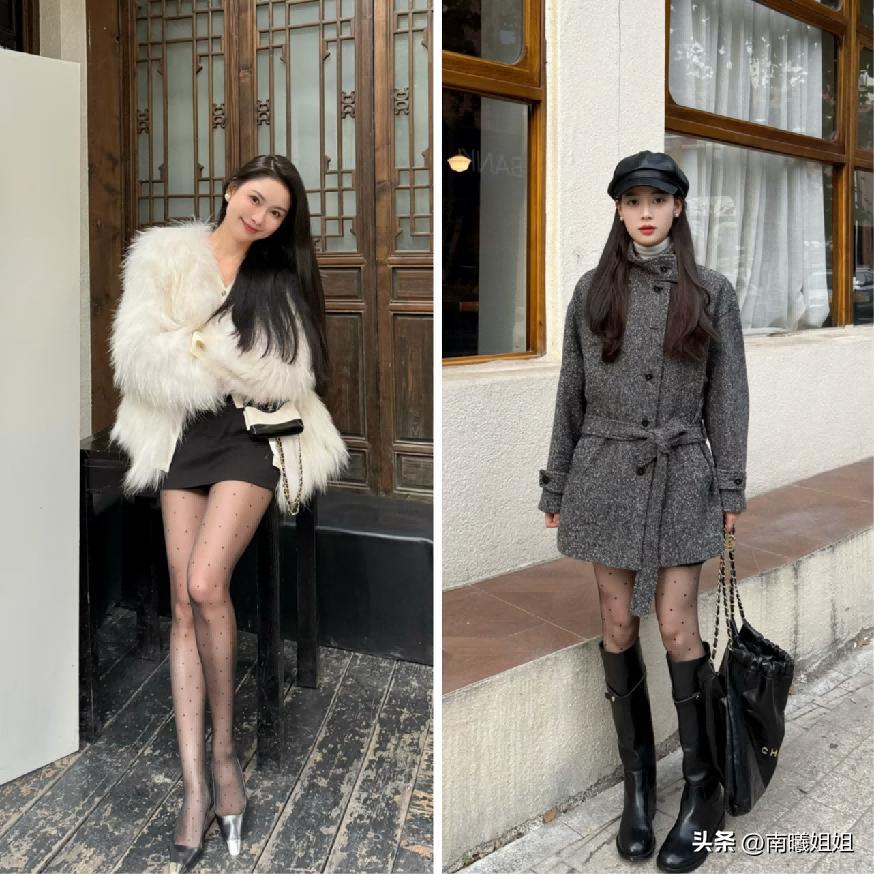 搭配黑絲的話其實就推薦屏幕前的各位女性可以首選略微長款的上衣與其進行組合,在冬季當中的時候,如果能夠營造出來這樣的下半身失蹤,真的是非常極具視覺優勢和時髦感,以及回頭率真的很高的存在哦。尤其是對於腿型狀態本身就很好看的女性來說,一定要多多的運用這樣的搭配方式,推薦大家可以首選略微長款的毛呢外套,又或者是像羽絨服以及又貴氣又時髦好看的皮草外套。