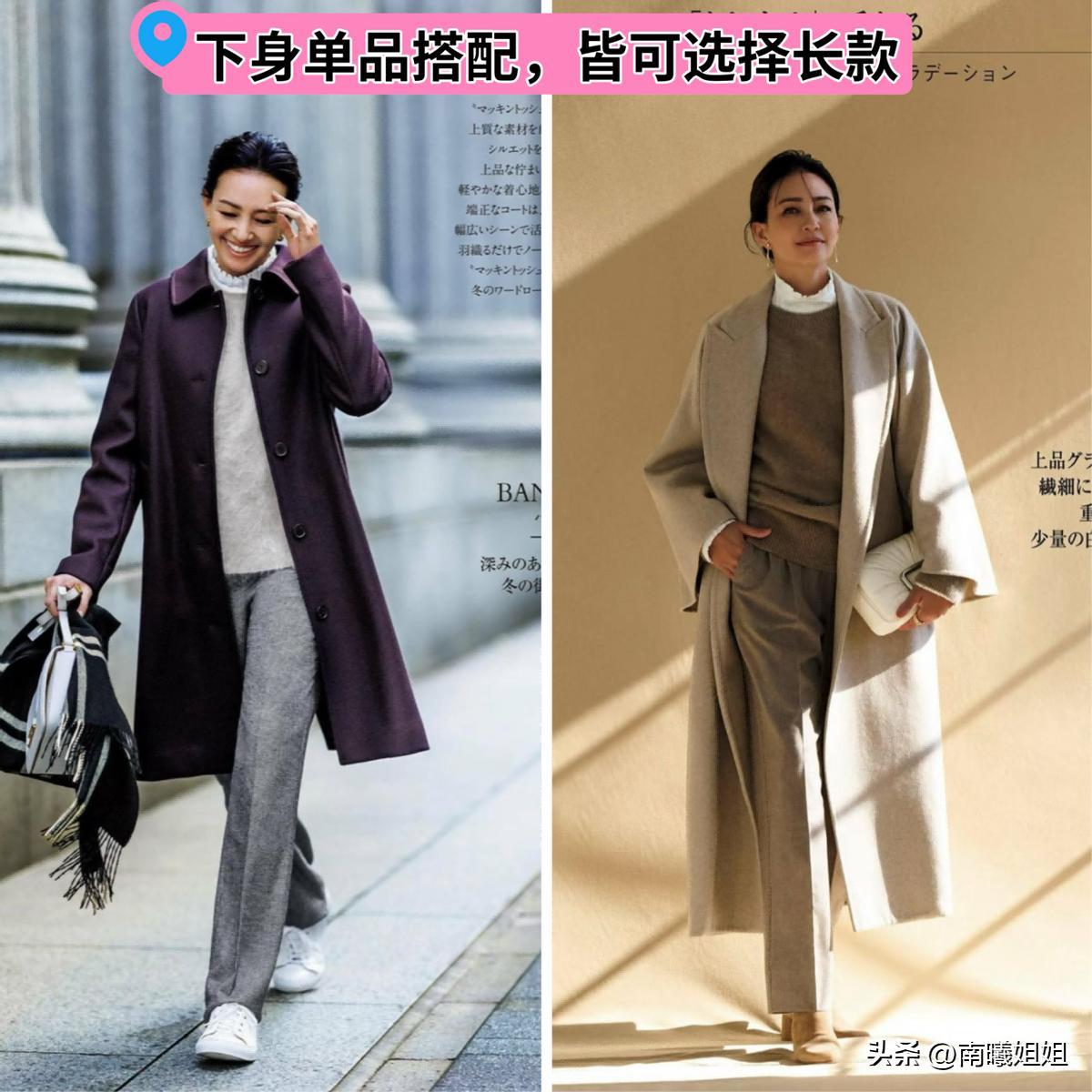 大衣我們就可以選擇偏向於直筒,又或者是略微寬鬆的設計款式,穿起來的時候百搭性比較足,而且不管是一個什麼樣的內搭來進行組合,都可以呈現的更加具有穩定性。如果你身上的小贅肉較多,又或者是微胖的感覺會比較明顯的話,那麼就不妨可以復刻一下日本主婦們這樣的搭配組合方式。