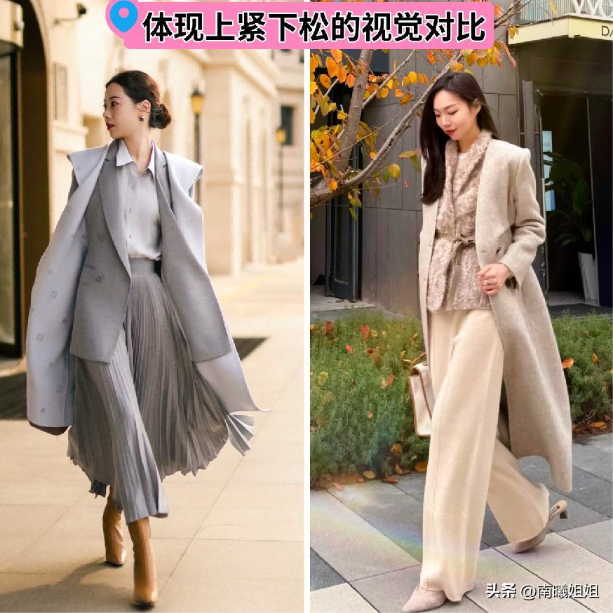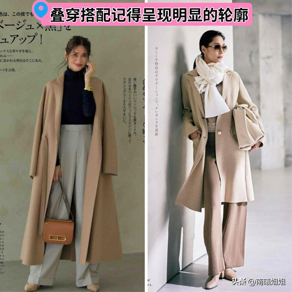 而且這樣的搭配方式,除了版型在視覺上能夠起到強調效果之外,其實在冬季當中的時候,運用一些不同的色系來進行疊穿,所呈現出來的對比性,又或者是強調比例的分割感會更加的明顯很多。像日本主婦們一樣,他們就往往都會在職場穿搭當中的時候體現出這樣的搭配方式,以此來襯托絕對的利落以及身材上的優勢點。