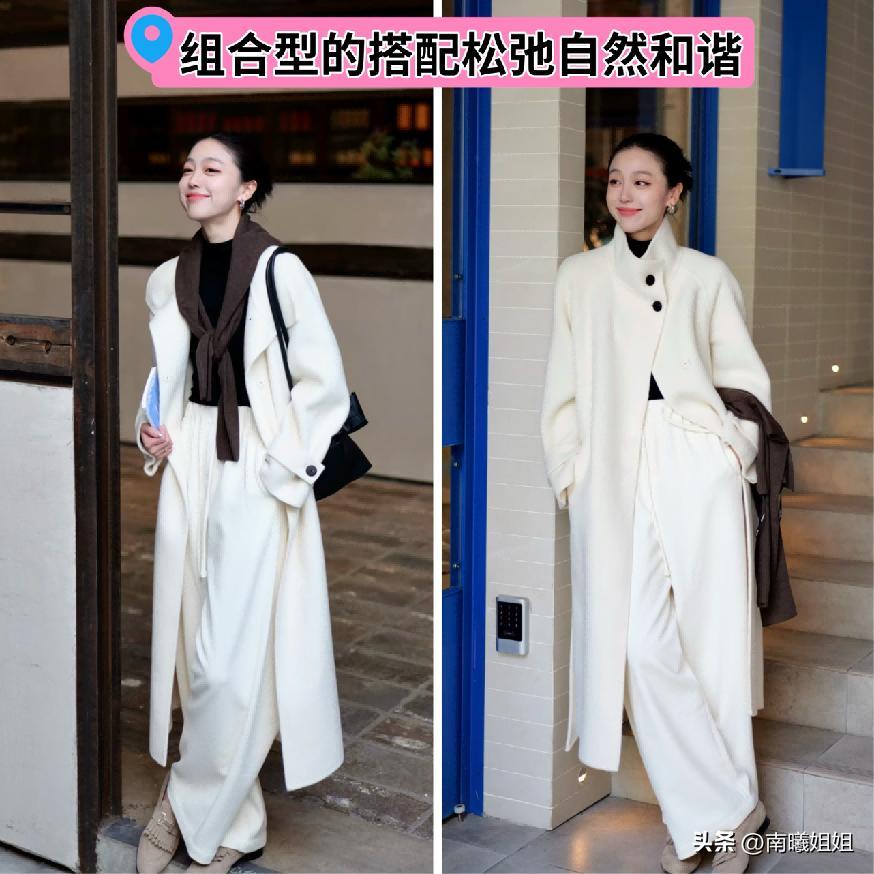 長款的大衣在選擇進行搭配的時候要運用一些疊穿的方式,所以在這個時候我們的內搭單品以及下半部分的系列就是比較關鍵的點了,建議各位女性可以首選像長褲以及長裙這一類的設計,都能夠遮擋住腳踝部位是最爲關關鍵的。不僅非常的能夠優化我們的身材狀態,最主要的是所襯托出來的整體沉穩以及大氣,還有優雅感的效果也很明顯。