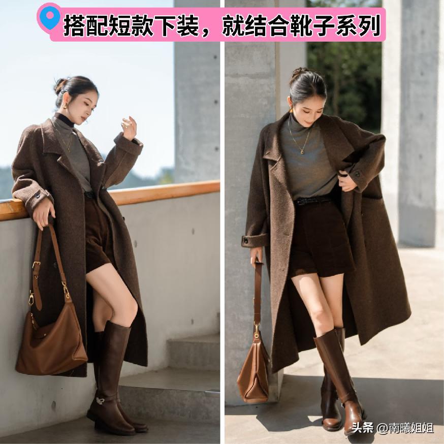 長款的大衣搭配在這個時候,其實我們也可以結合一些能夠遮擋住腳踝或者是小腿部位的靴子,長筒靴以及短靴的形式都可以,以此來進行選擇搭配。但是爲了我們腿型比例的優勢,以及整體的美感體現,建議大家的靴子系列要麼就選擇短靴的形式,要麼就可以將其長度卡在膝蓋上下的設計會更加的穩定有優勢。