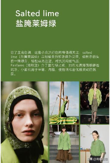 綠色的單品搭配好像一直以來都是很具有清冷感和溫柔效應的,但是好像絕大多數的綠色對於肌膚的狀態都不是很友好,但是在今年的冬季這一款萊姆綠流行色,真的是可以將顯白、顯高級和沉穩的視覺優勢合爲一體而展現出來的哦,飽和度會比較低就不會突兀,明度不是非常高就可以保證肌膚狀態本身的穩定。