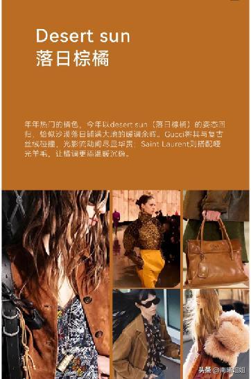 大地色系本身的色調就是屬於對於我們肌膚狀態襯托的效果更爲穩定,更加具有優勢的類型。但是如果它本身的顏色更亮一些的話,就會讓好的氣色被強調的更爲明顯。所以第4款流行色推薦大家在今年可以選擇落日棕橘,棕色和橘色調的組合不僅非常的新穎,而且真的是要比其他大地色更具有亮眼感的襯托效果呢!