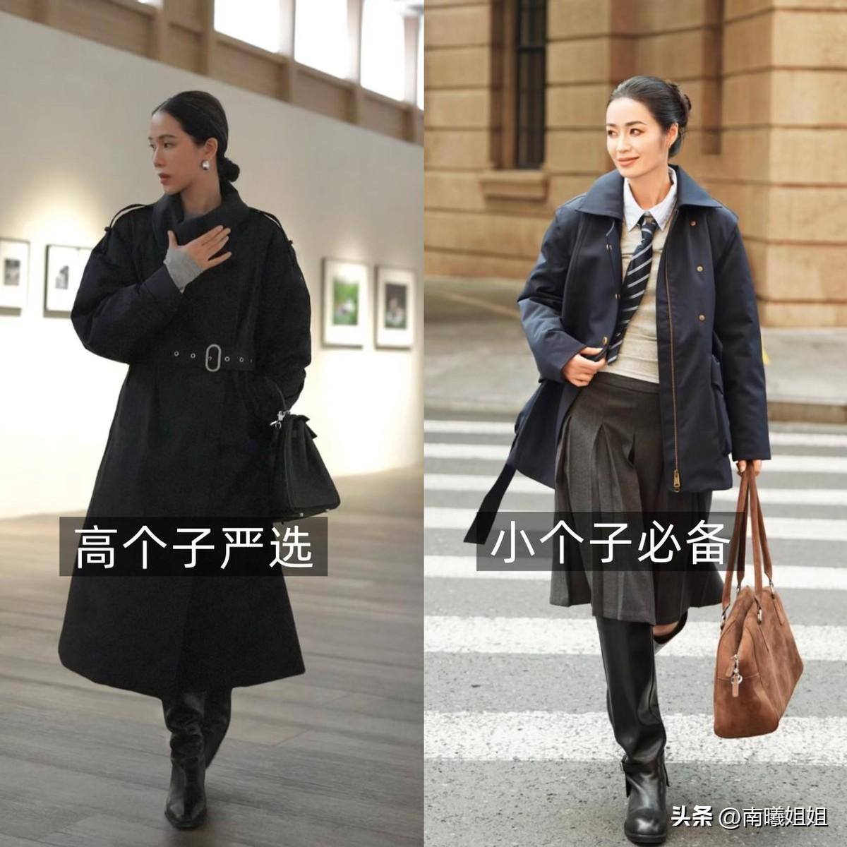 高個子可以選擇遮住小腿的長款羽絨服,小個子穿遮臀長度不壓身高,無論是短款還是長款,都很適合配長靴,輕鬆穿出高智大女人的風範兒,氣場全開!