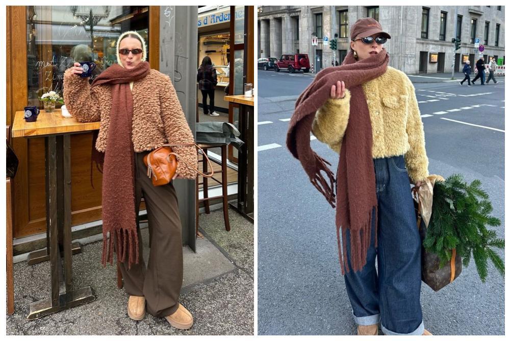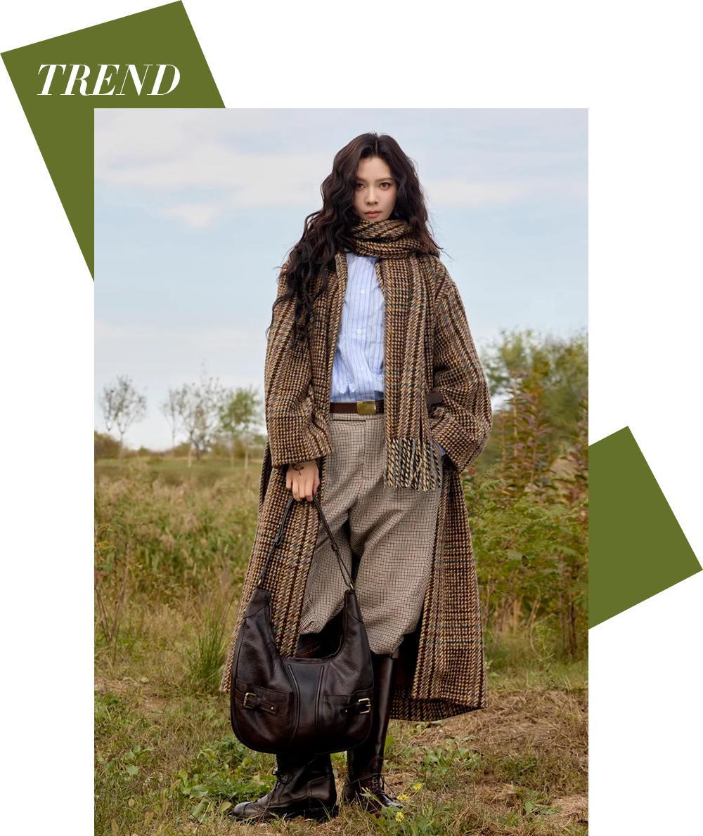 當整體穿搭略顯平淡時,一條厚實的羊毛圍巾便是提升造型感的利器。隨意地堆積在脖頸處,不僅能有效鎖住溫度、抵禦寒風,更在瞬間提升了着裝的溫暖氛圍與層次感。