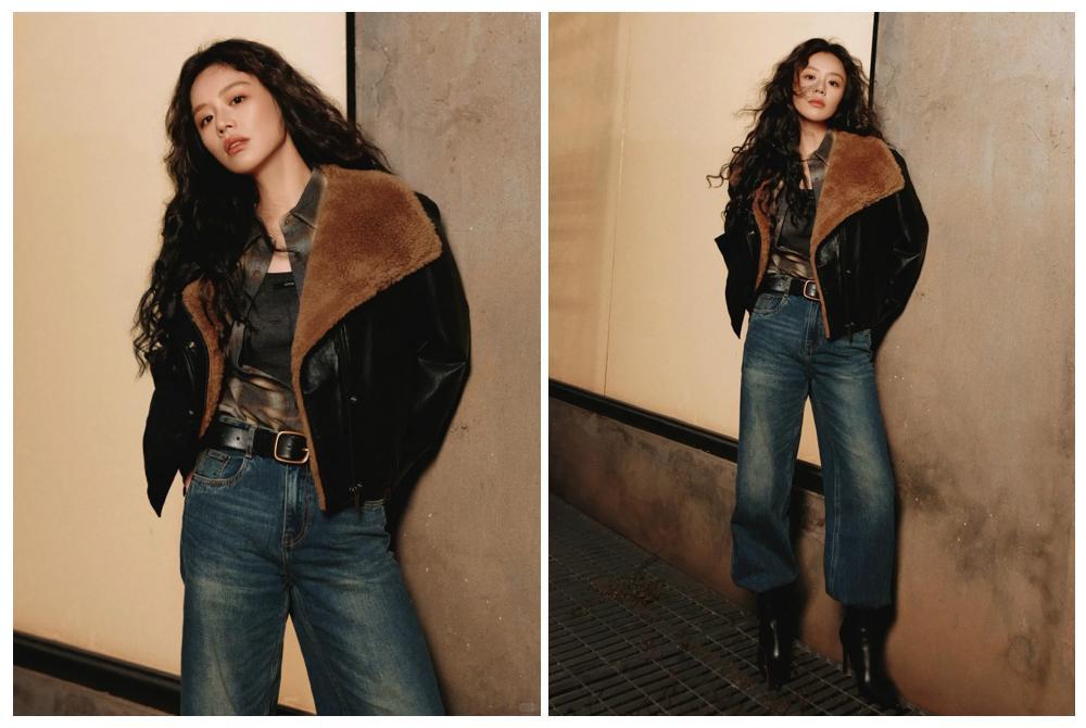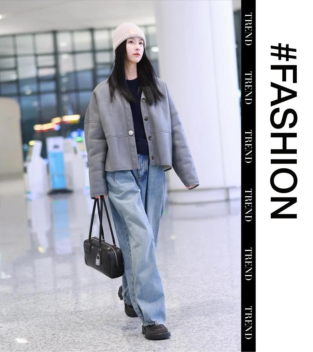天氣越冷,越想穿得“柔軟”又舒適,這種Softcore不用追求誇張的戲劇性,視覺色彩溫和,純粹又簡練,更是可以營造出不被束縛的慵懶氛圍。陳都靈這身以灰調爲主的穿搭,自帶清冷氣場,皮毛一體深V夾克線條利落,與淺藍色牛仔褲更是形成完美的漸變層次感。