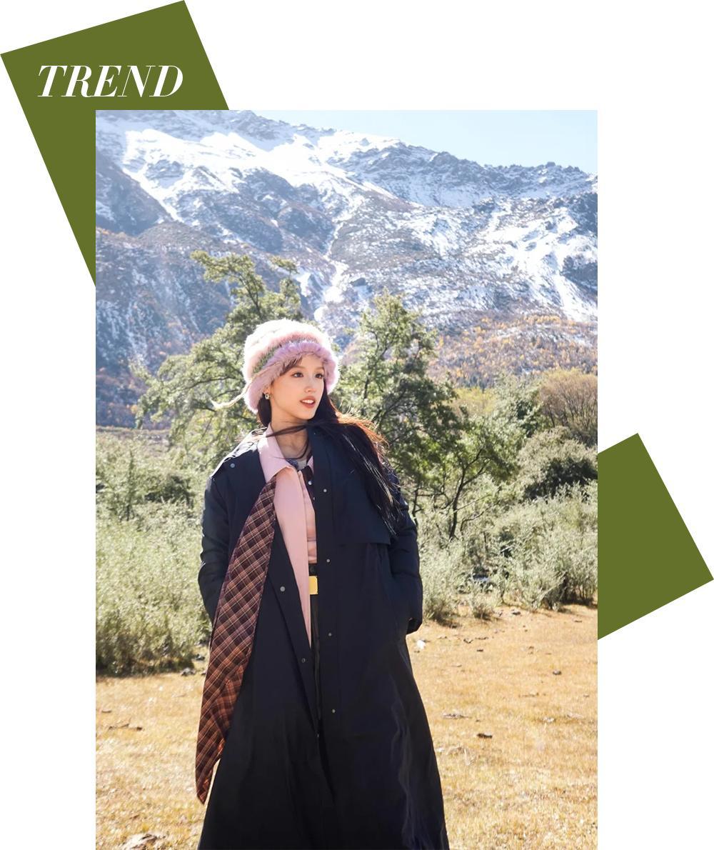 在風格的塑造上,利用一些單品自帶的溫柔濾鏡來強化“Soft”的基調,意想不到的組合恰恰彰顯了“不失個性”的“Core”內核。張雅琪的這身造型,亮眼的粉色襯衫搭配細節豐富的格紋圍巾,層次感與甜美感兼具。而點睛之筆莫過於那頂毛絨絨的帽子,不僅保暖,更彷彿自帶柔光濾鏡。