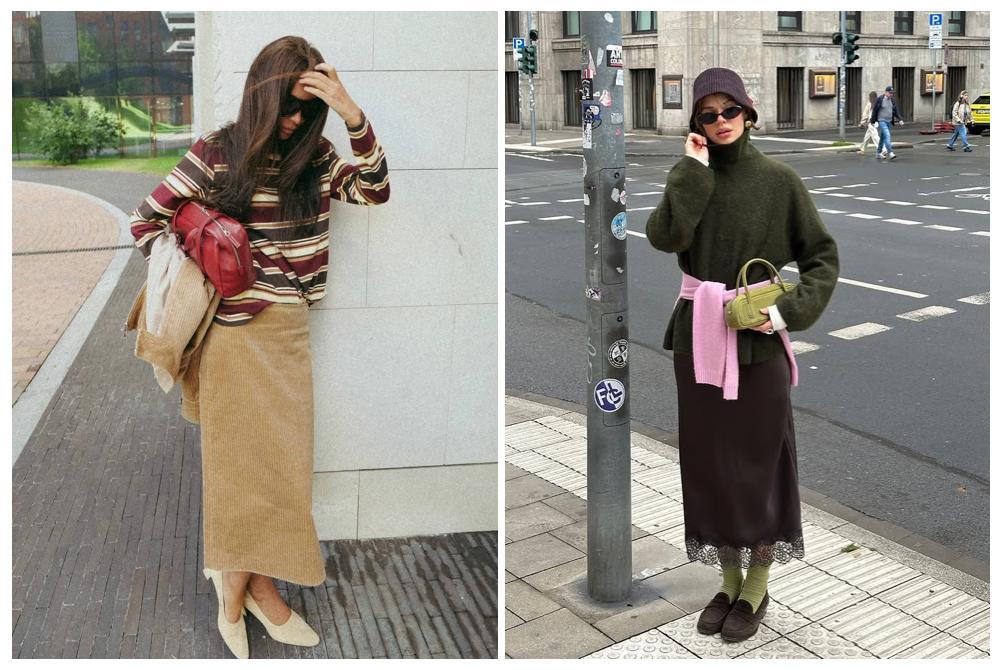 用質感毛衣搭配輕盈半裙,將寬鬆的毛衣下襬隨意掖入裙腰,既能明確腰線又保留了慵懶韻味。腳下無論是搭配舒適的平底鞋還是復古樂福鞋,整體造型輕巧而富有細節,散發出一種不費力的雅緻氣息。