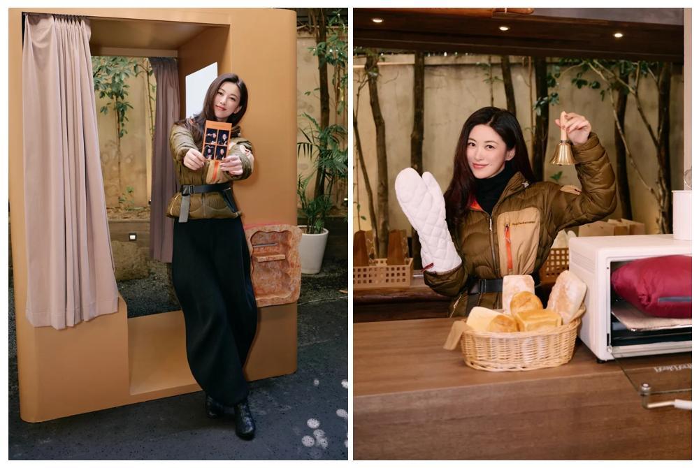 朱珠則是將羽絨服穿出了優雅復古的氣質,帶着光澤感的深駝色,濃郁又生動,搭配的最大亮點就是在腰部繫上一條寬腰帶,瞬間將膨脹輪廓雕塑成黃金比例的曲線,顯得既有層次又很有矜貴的氣質。