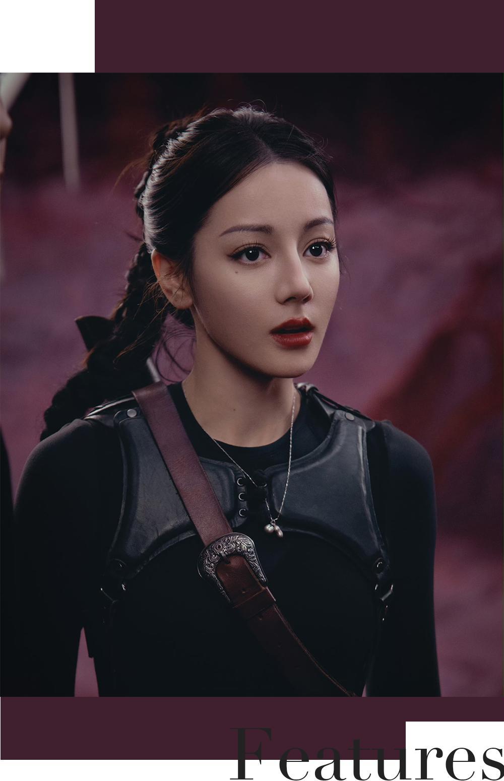 劇中的各種動作戲加上懟臉鏡頭,將熱巴的冷豔魅惑展現得淋漓盡致,紅脣盤發無一不散發着力量感與氣血感。