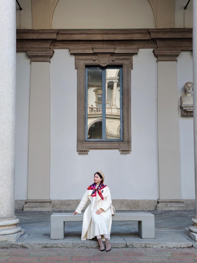 色彩的飽和度也是剛剛好,無論在什麼風景裏,都能完美融入當地。我在米蘭時,在冬奧會倒計時裝置前面拍照也非常和諧,既百搭又藝術。