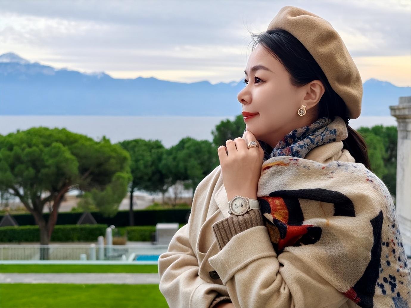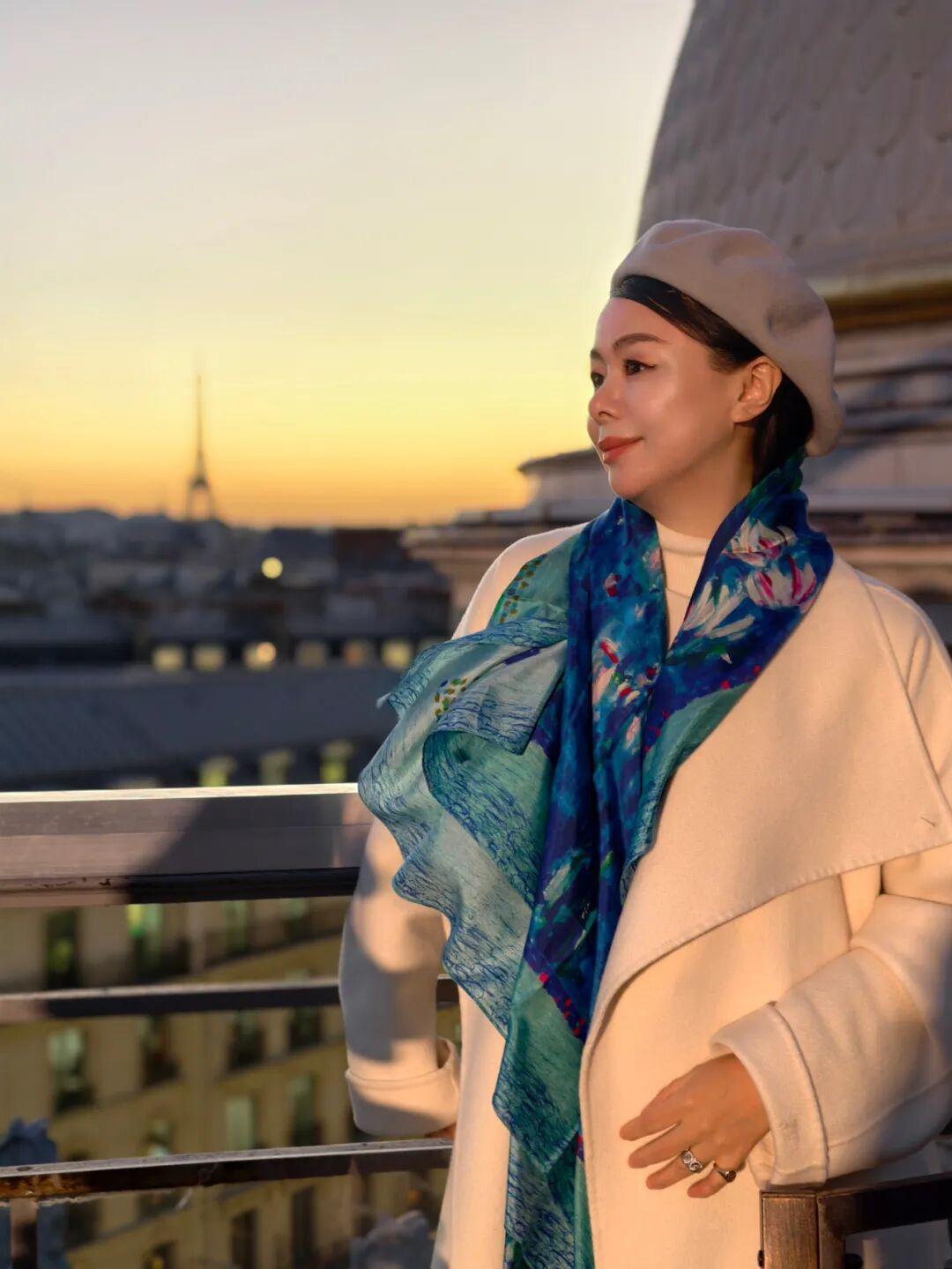 在巴黎時,落日時分用它作爲全身的點睛配飾,睡蓮映襯着金黃的餘暉,感覺詩意又浪漫。