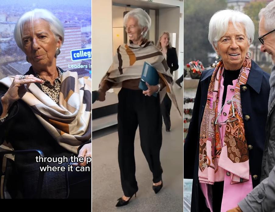 你也許已經注意到了,今年69歲的拉加德,除了愛馬仕包包和香奈兒套裝,最愛的單品大概就是圍巾——尤其是那些顏色鮮豔、圖案豐富的款式,主打一個讓你過目不忘。