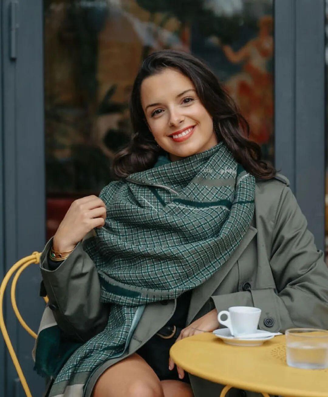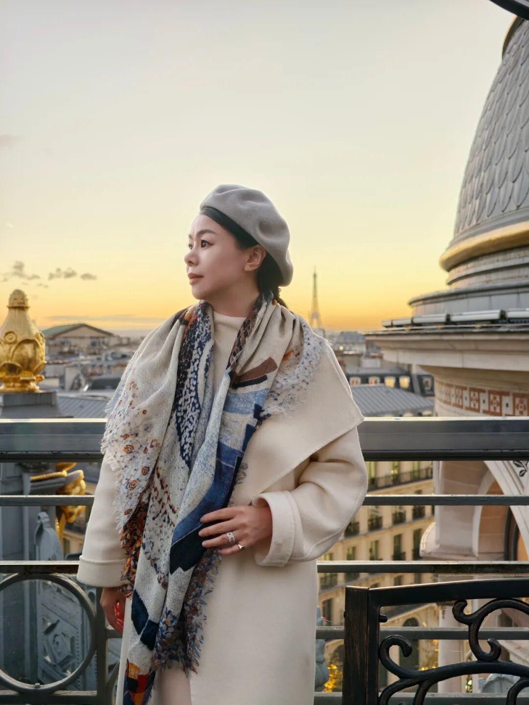 “巴黎印象”的圖案設計有着建築美感,靈感取自巴黎大皇宮標誌性的玻璃穹頂。披在身上低調雅緻,帶有幾分“老錢風”的沉穩與貴氣。