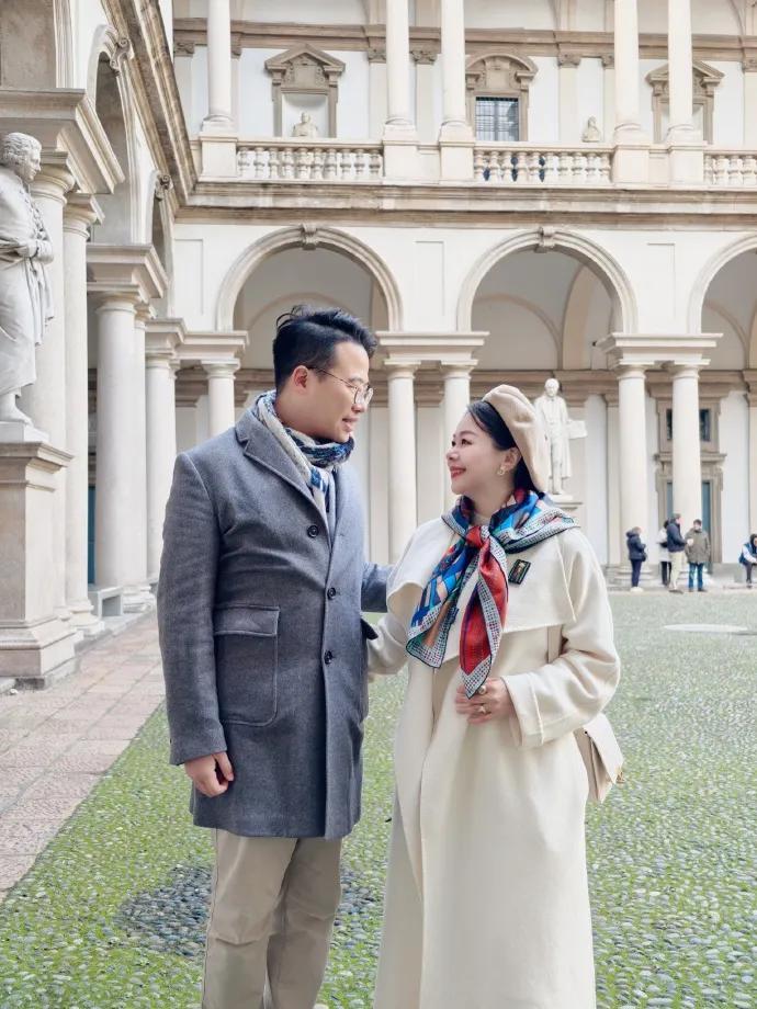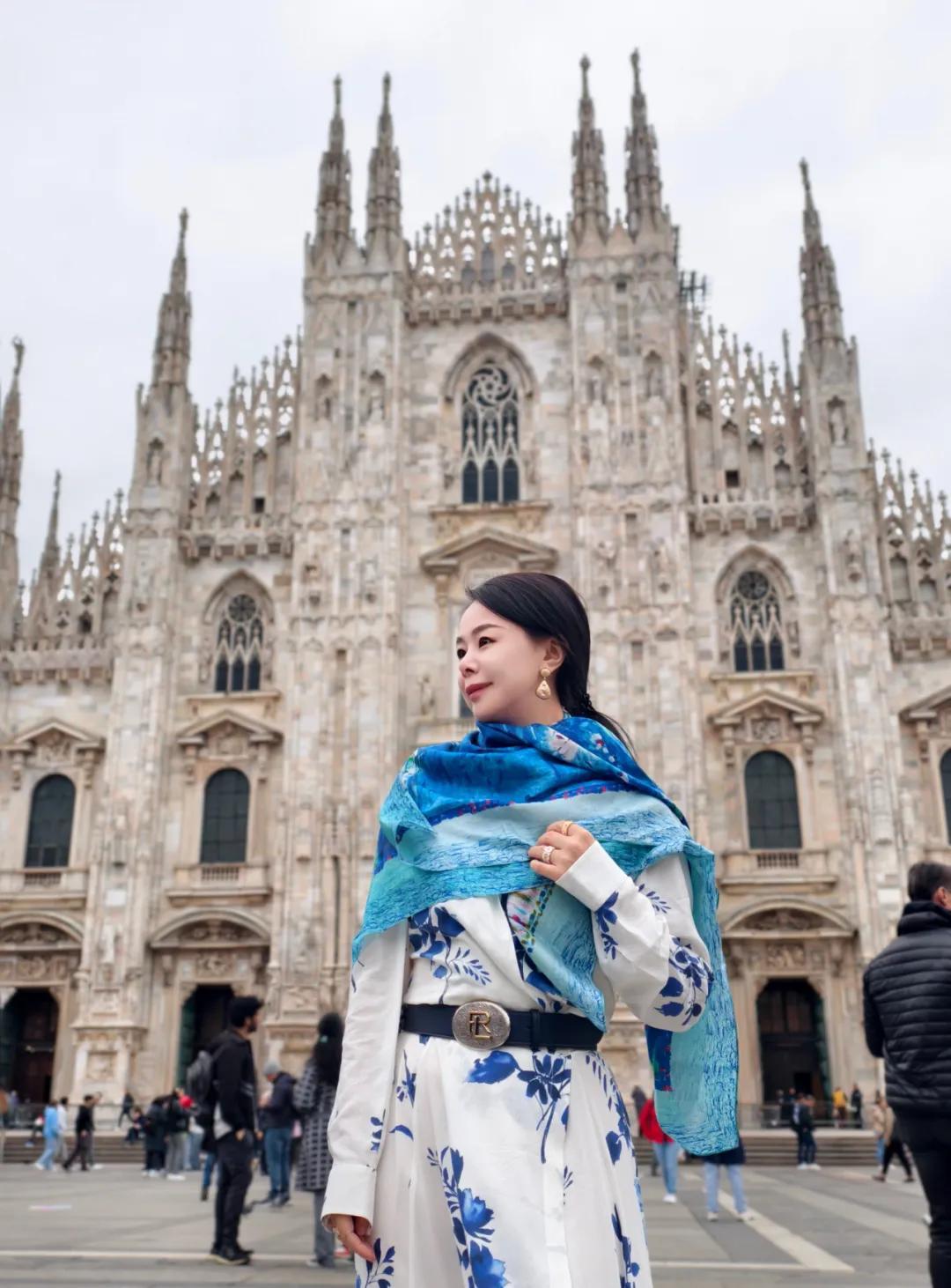 在意大利時,我們一起在米蘭市中心逛街,貝圖絲的藝術感圖案,和意式風情尤爲搭調。