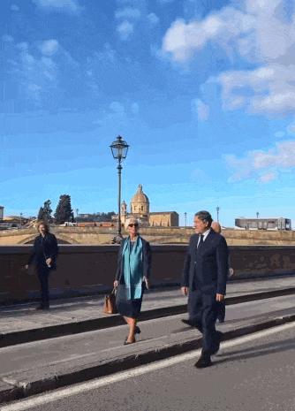 不久前,在意大利出席歐洲央行理事會會議的拉加德,沿着阿爾諾河一路“散步”到辦公室。一條隨意搭在身上的湖藍色圍巾,和她的一頭銀髮,以及愛馬仕包包一樣搶鏡,回頭率100%~