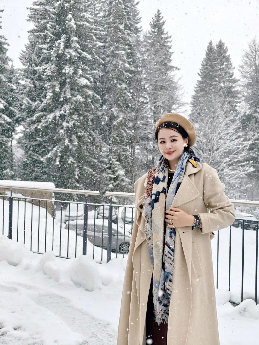 來到瑞士,還趕上了初雪。幸好有貝圖絲,它不僅能擋風保暖,藝術感的圖案也特別有意境。
